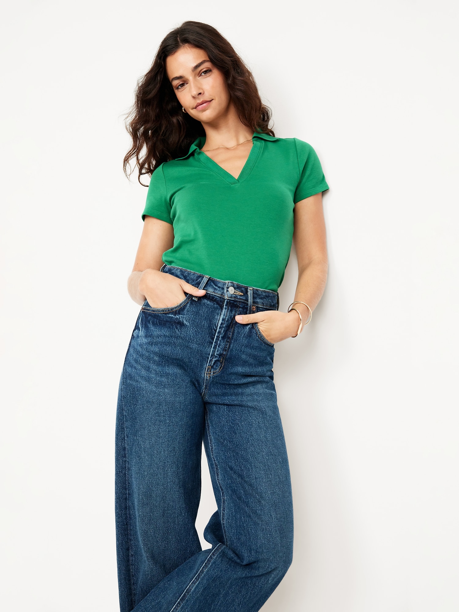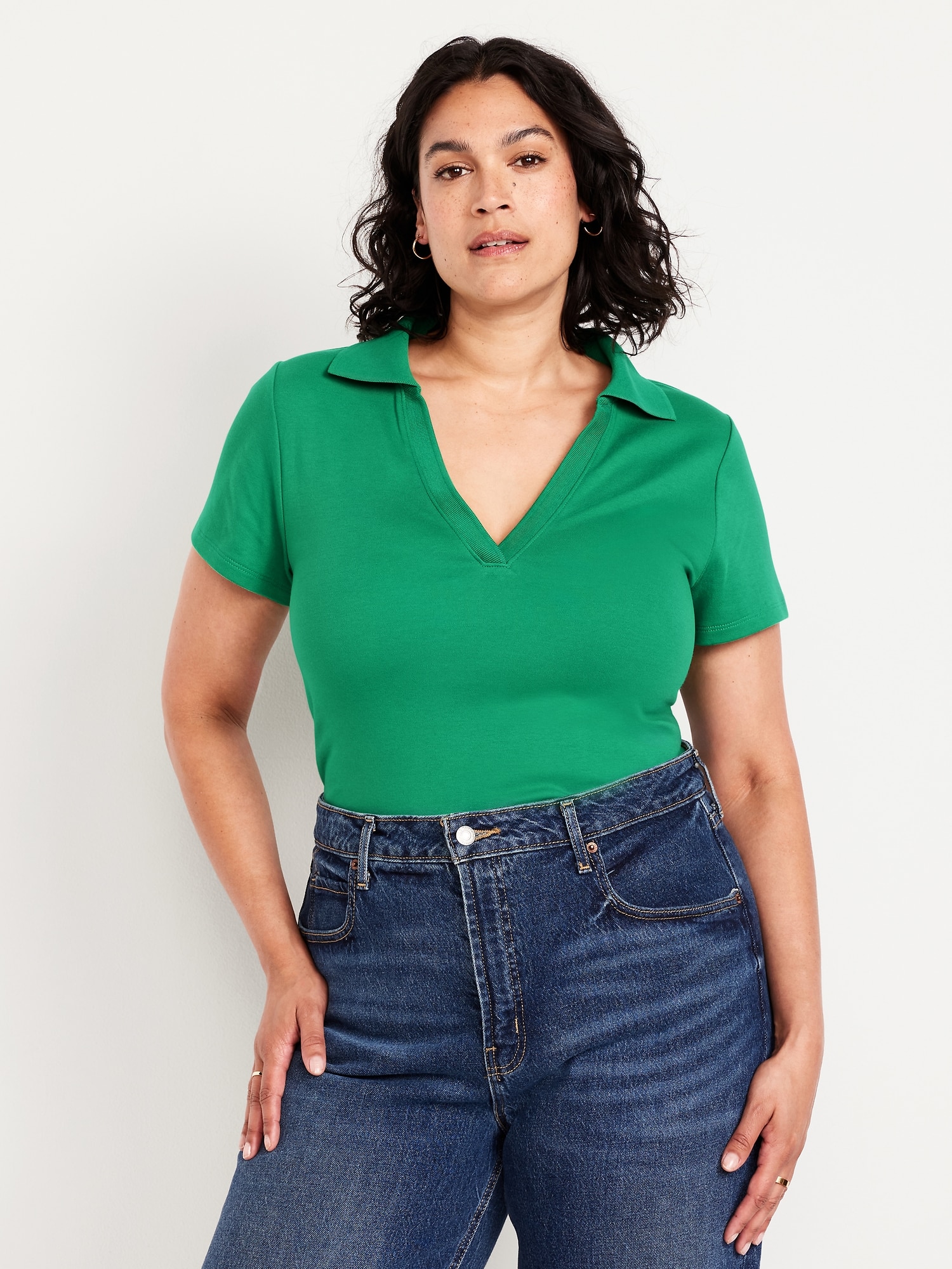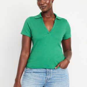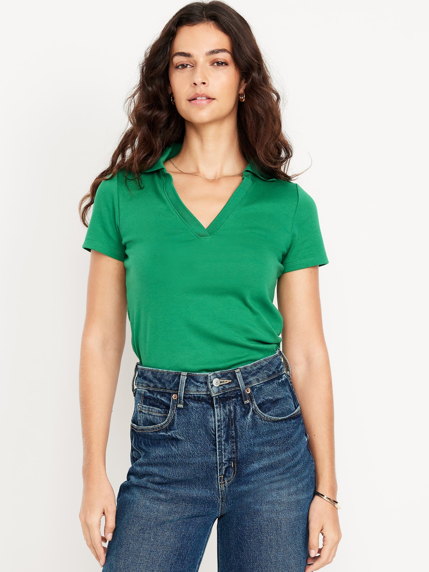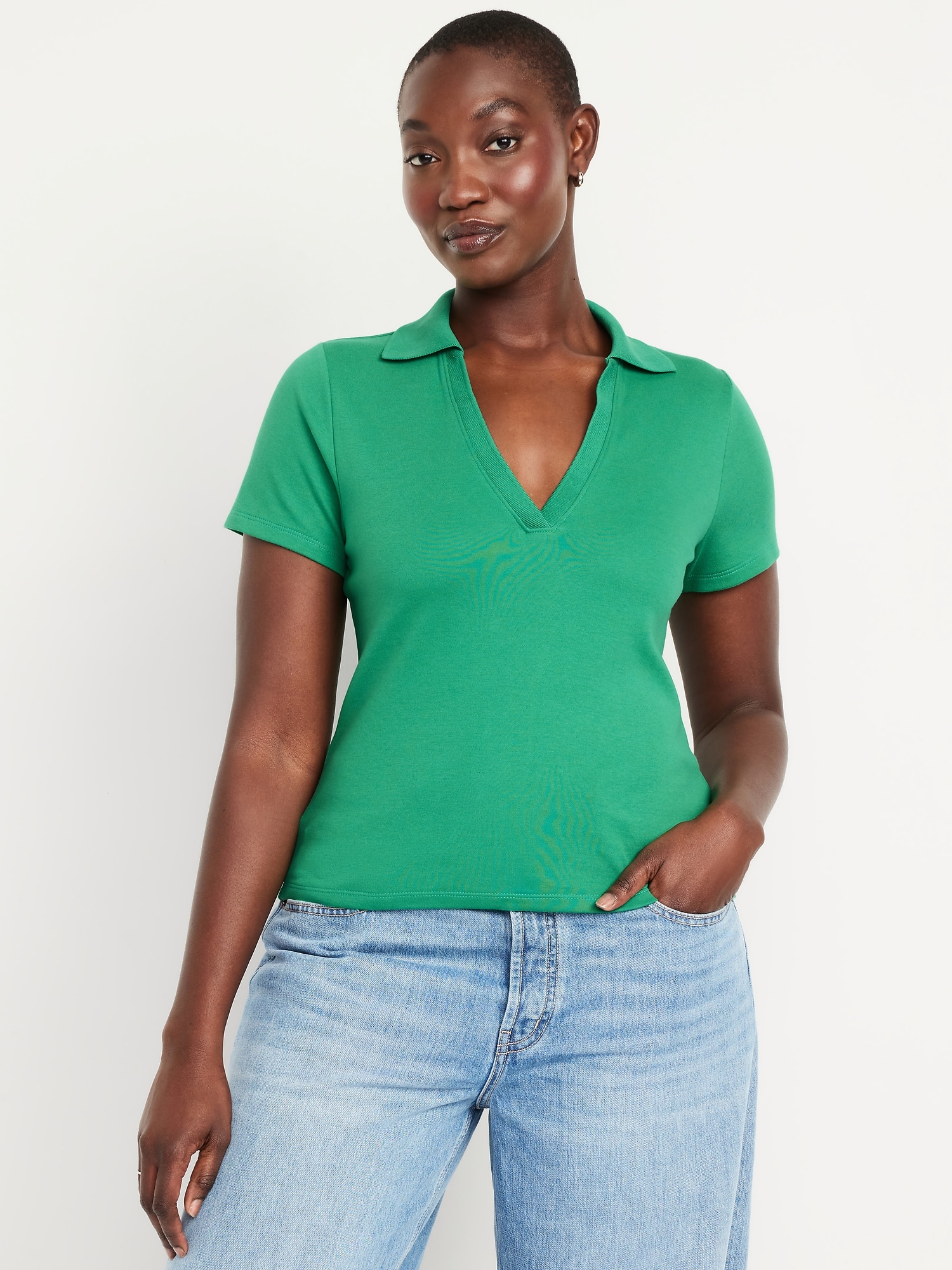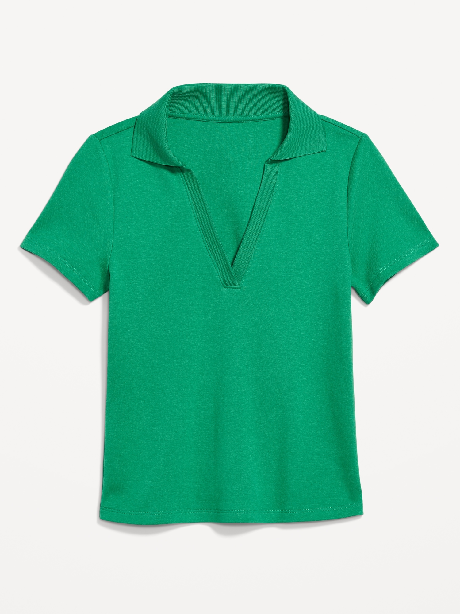 Short-Sleeve Polo: spread v-neck collar, short sleeves, striped print, #802261