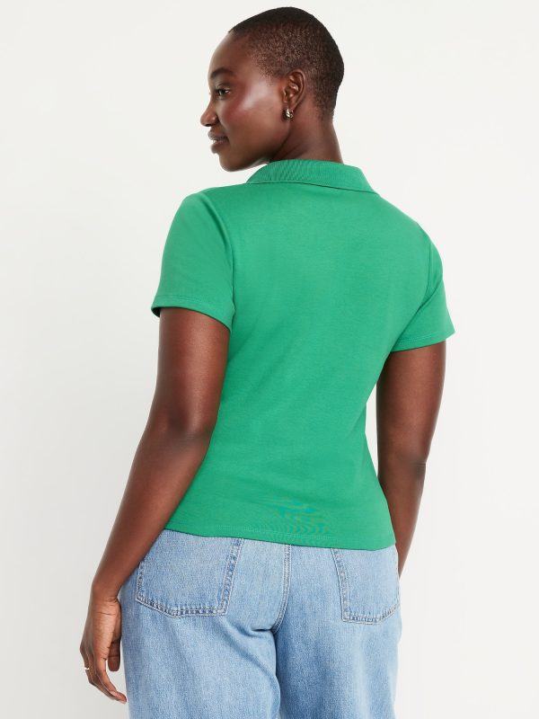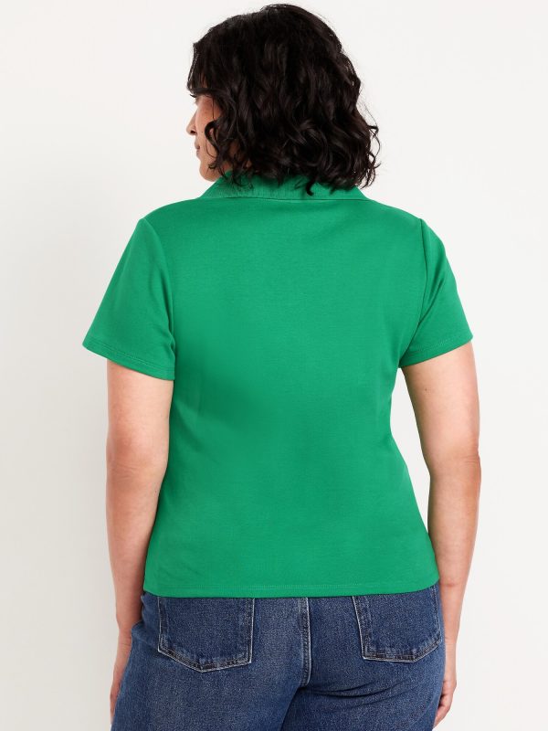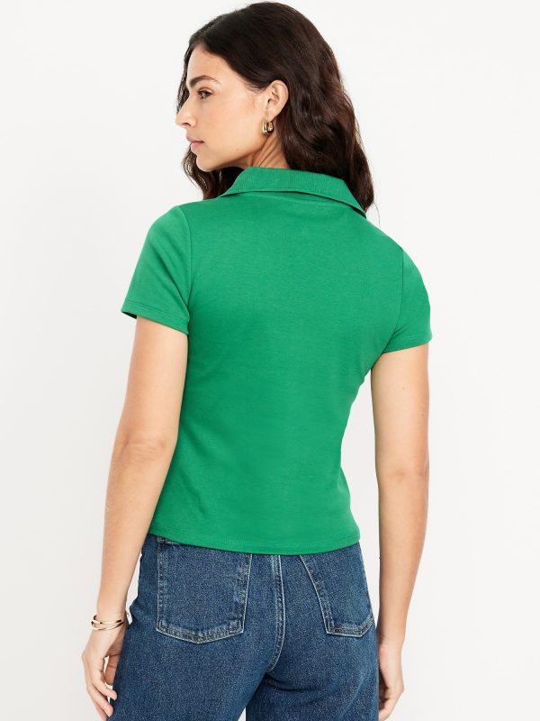 Short-Sleeve Polo: spread v-neck collar, short sleeves, striped print, #802261