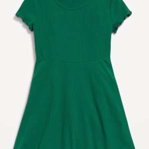Short-Sleeve Ribbed Fit and Flare Dress for Girls