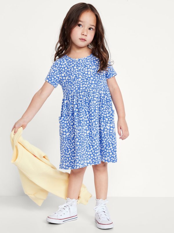Short-Sleeve Ribbed Fit and Flare Pocket Dress for Toddler Girls: Mix Match Go Productcrew neck, short sleeves, seamed waist, flared skirt, patch pockets at each side, all-over print, #586087
