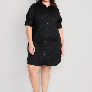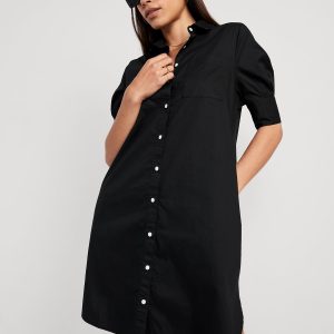 Short-Sleeve Shirt Dress: spread collar, elbow-length sleeves, full-button front, patch pocket, #796144