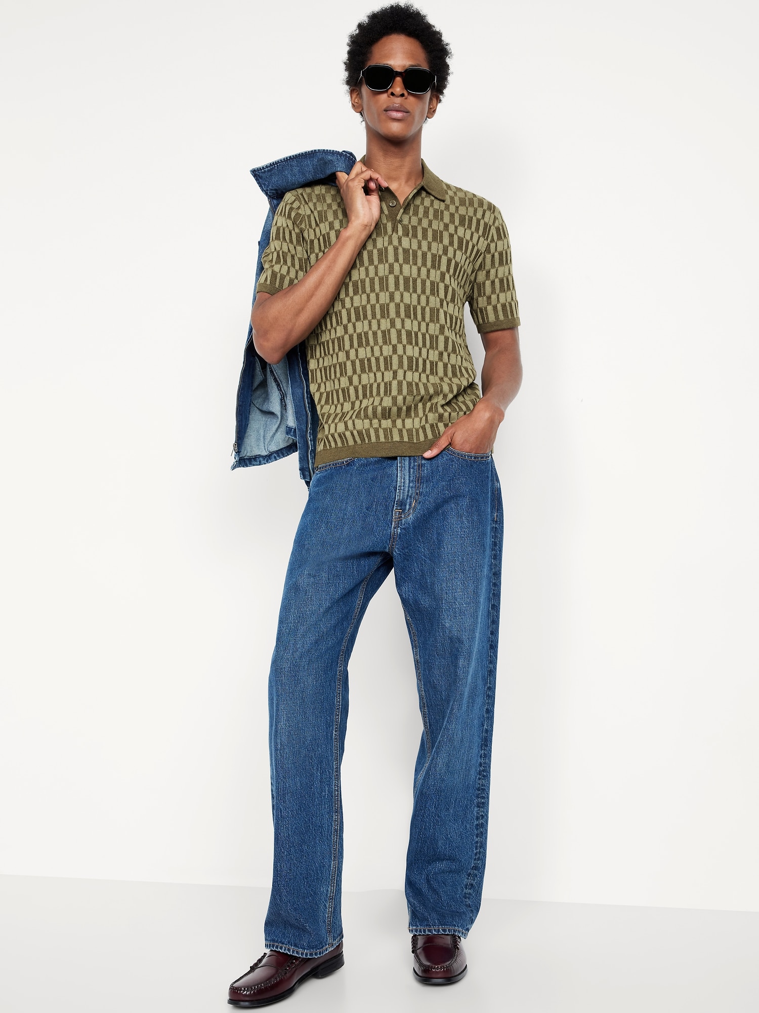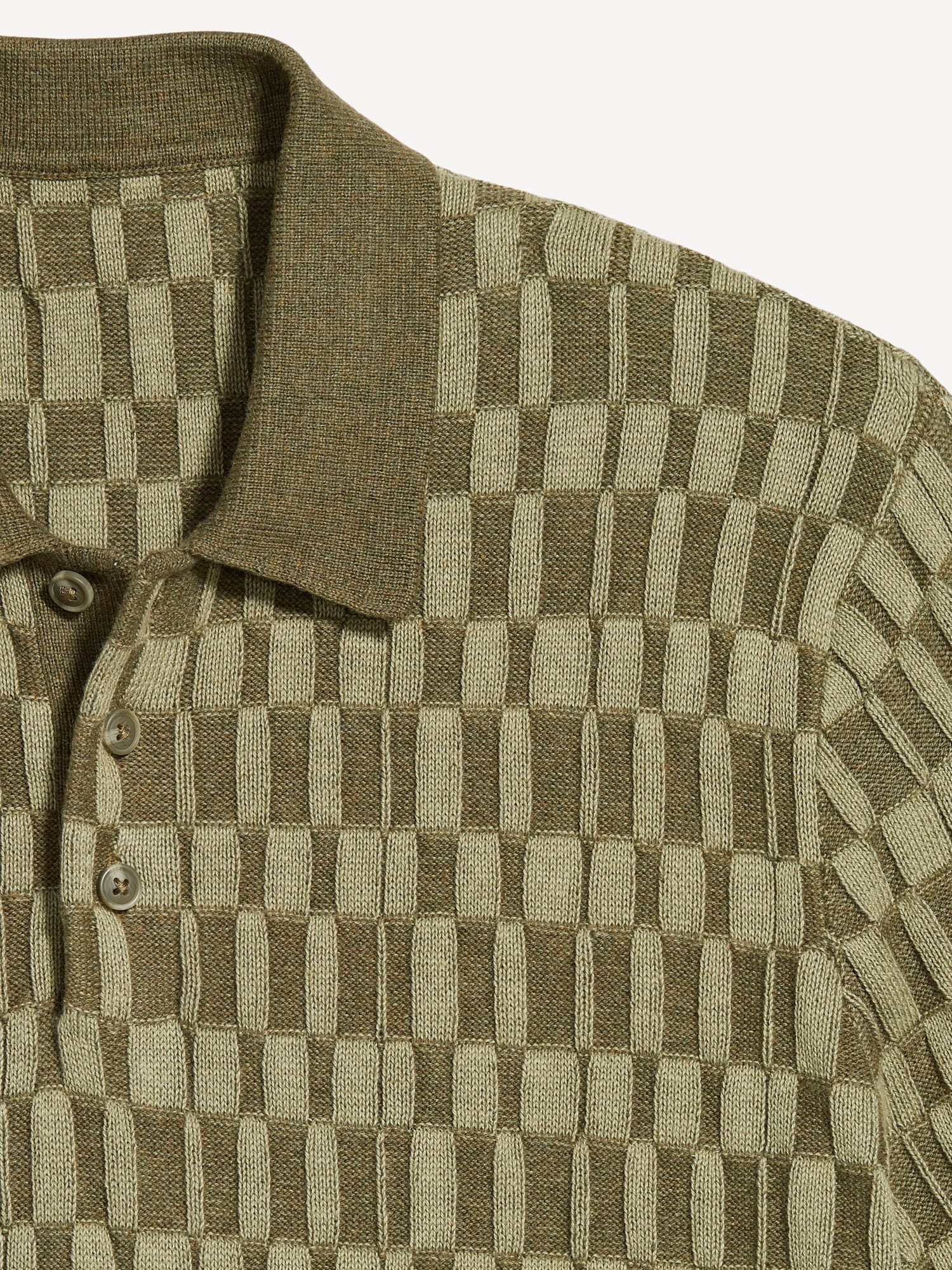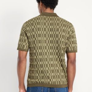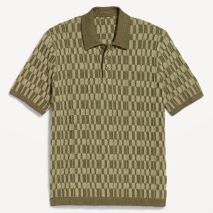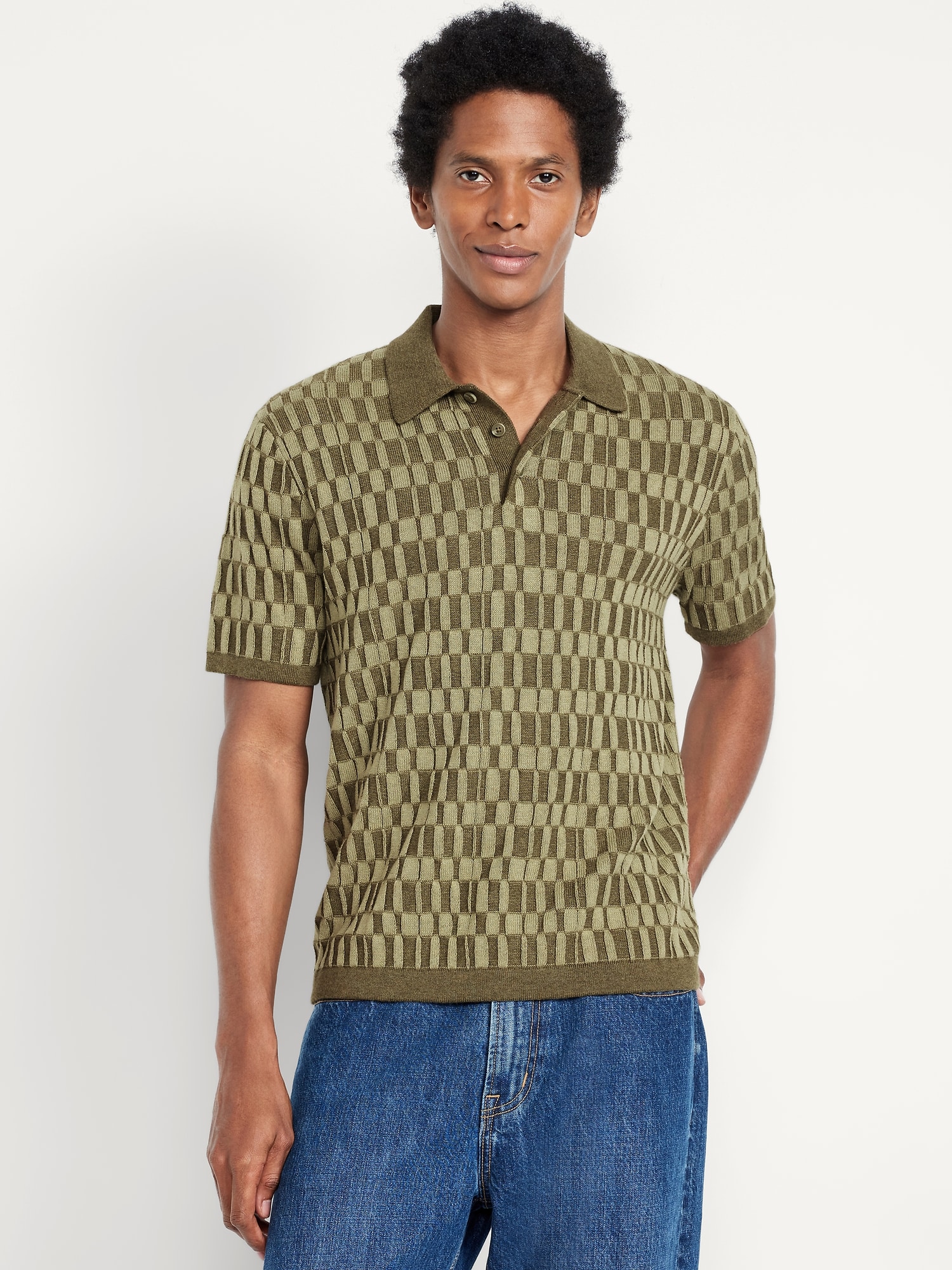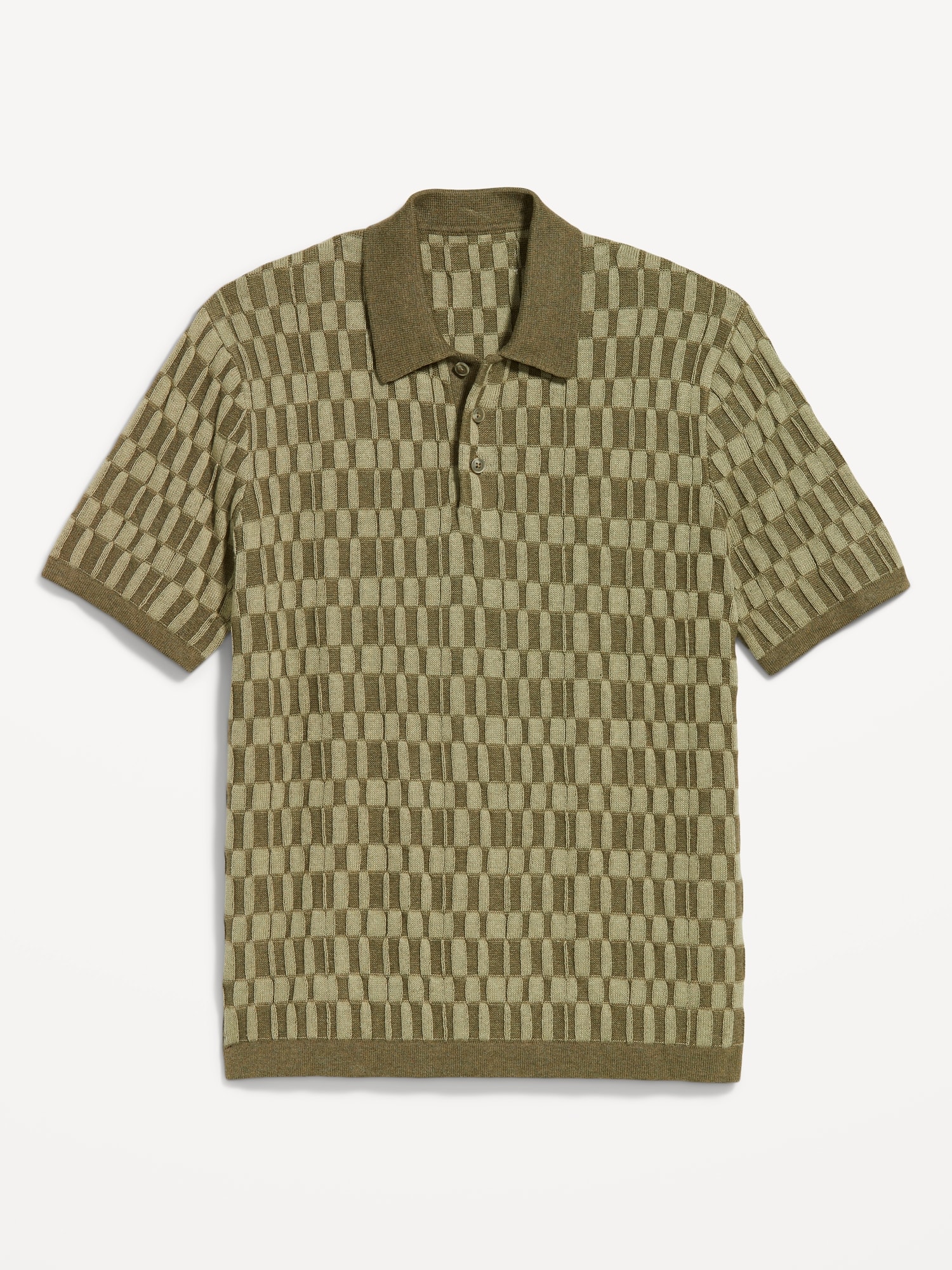 Short-Sleeve Sweater-Knit Polo: spread collar, short sleeves, buttoned placket, pullover style, #802042