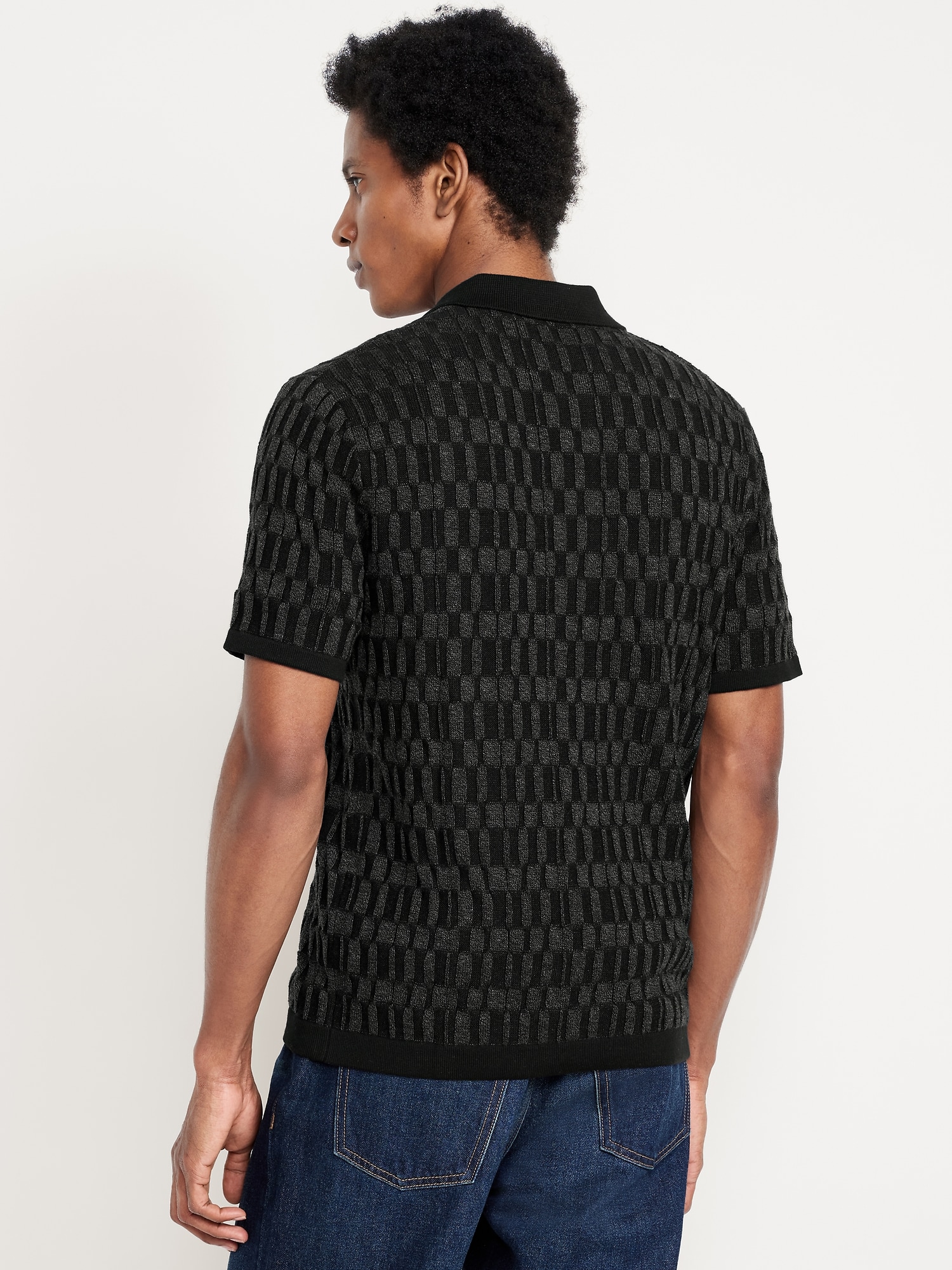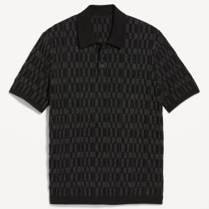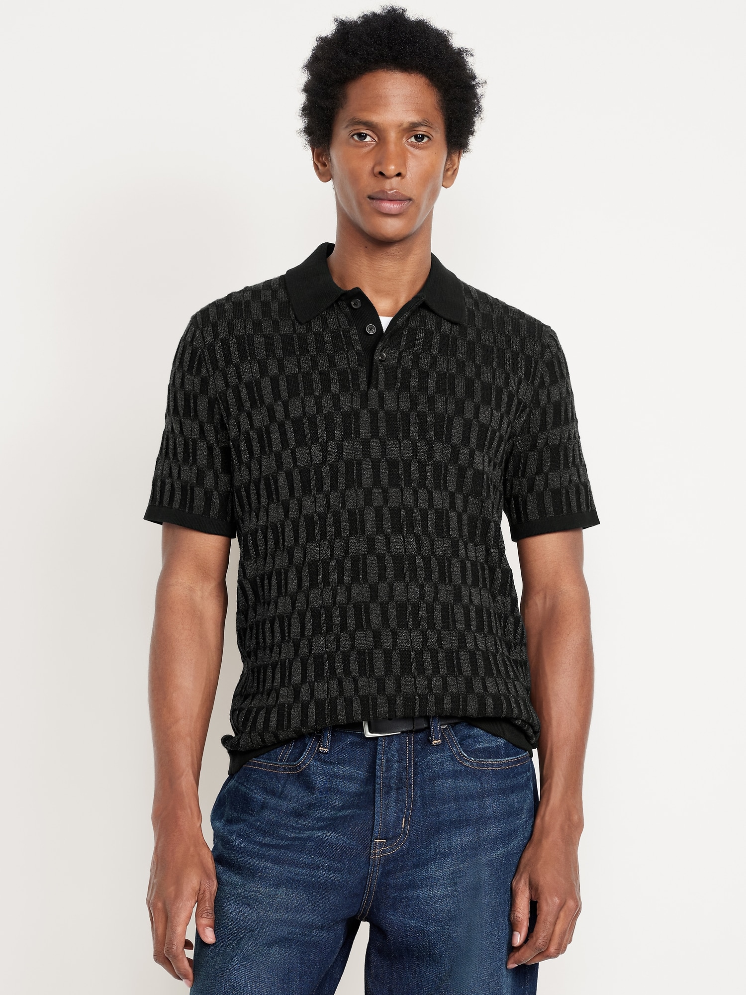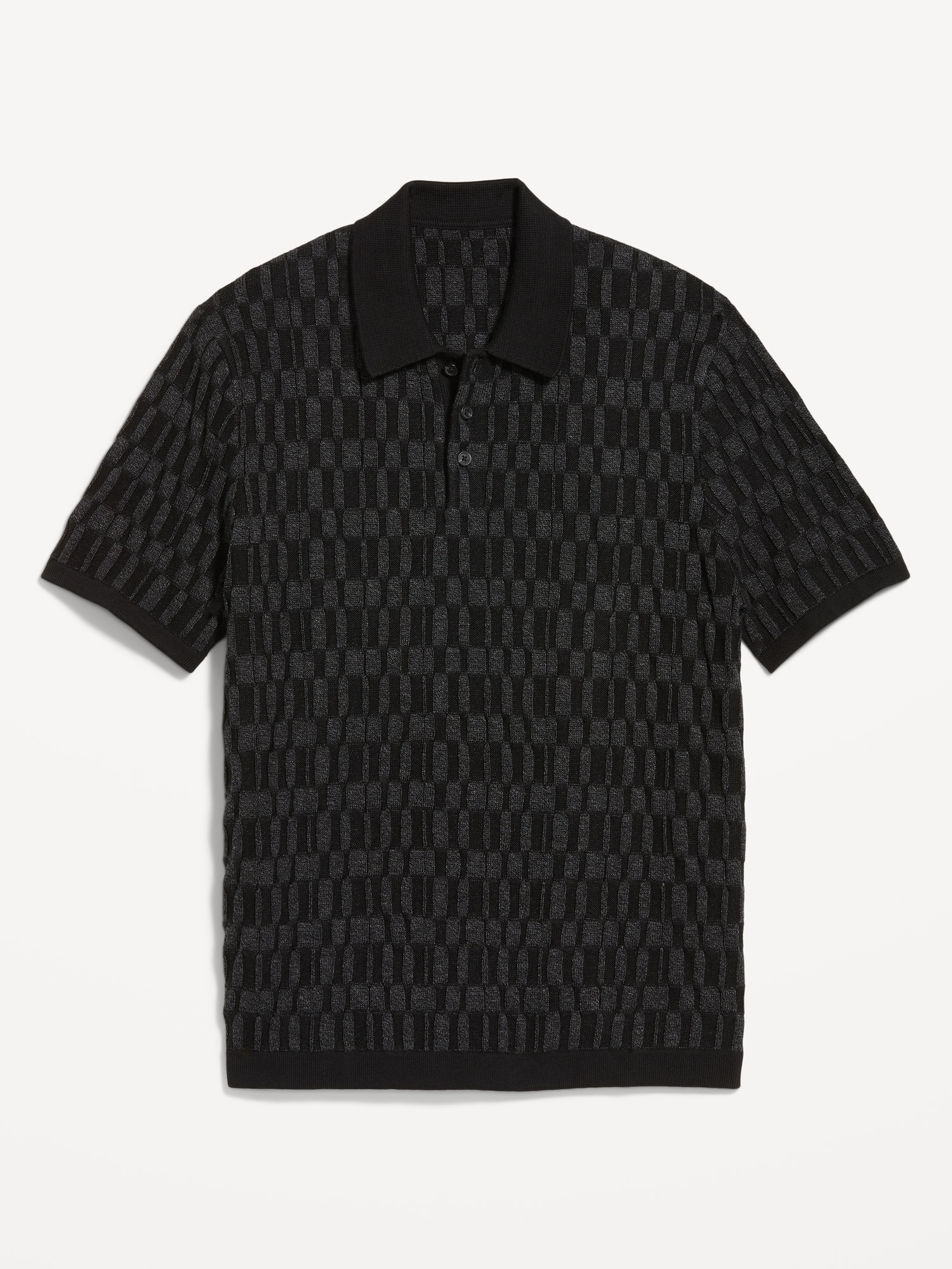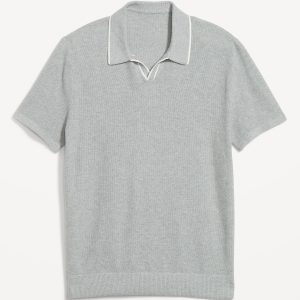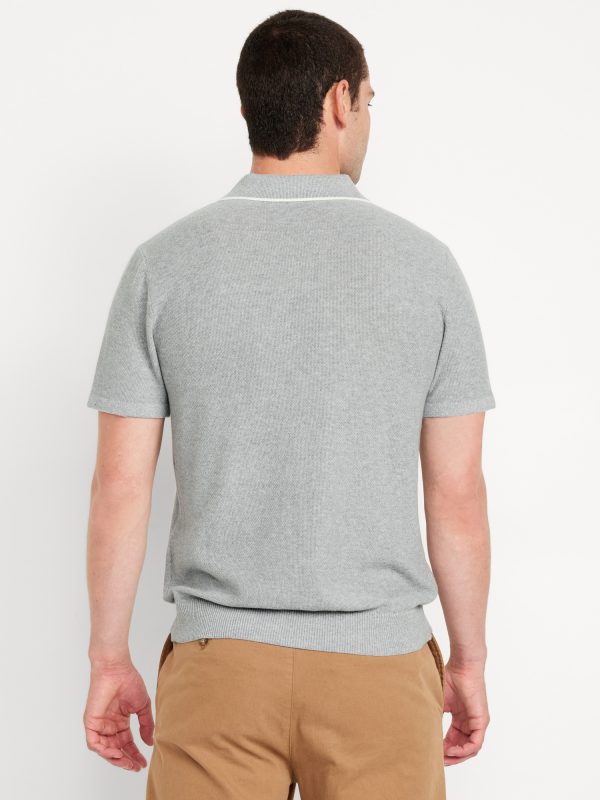 Short-Sleeve Sweater-Knit Polo: spread collar, short sleeves, buttoned placket, pullover style, #802042