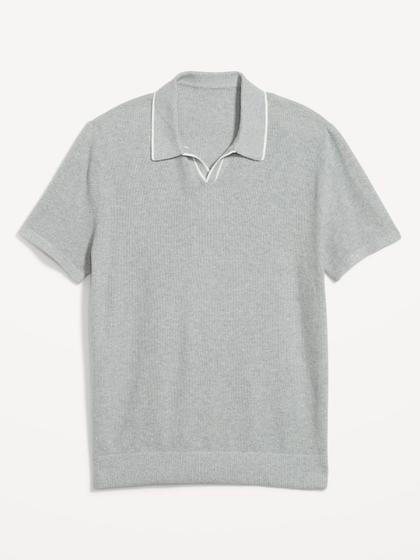 Short-Sleeve Sweater-Knit Polo: spread collar, short sleeves, buttoned placket, pullover style, #802042