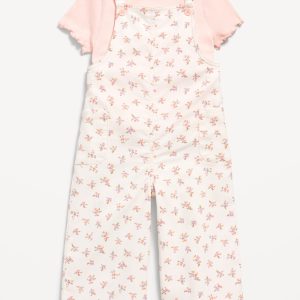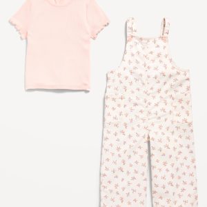 Short-Sleeve T-Shirt and Jumpsuit Set for Toddler Girls