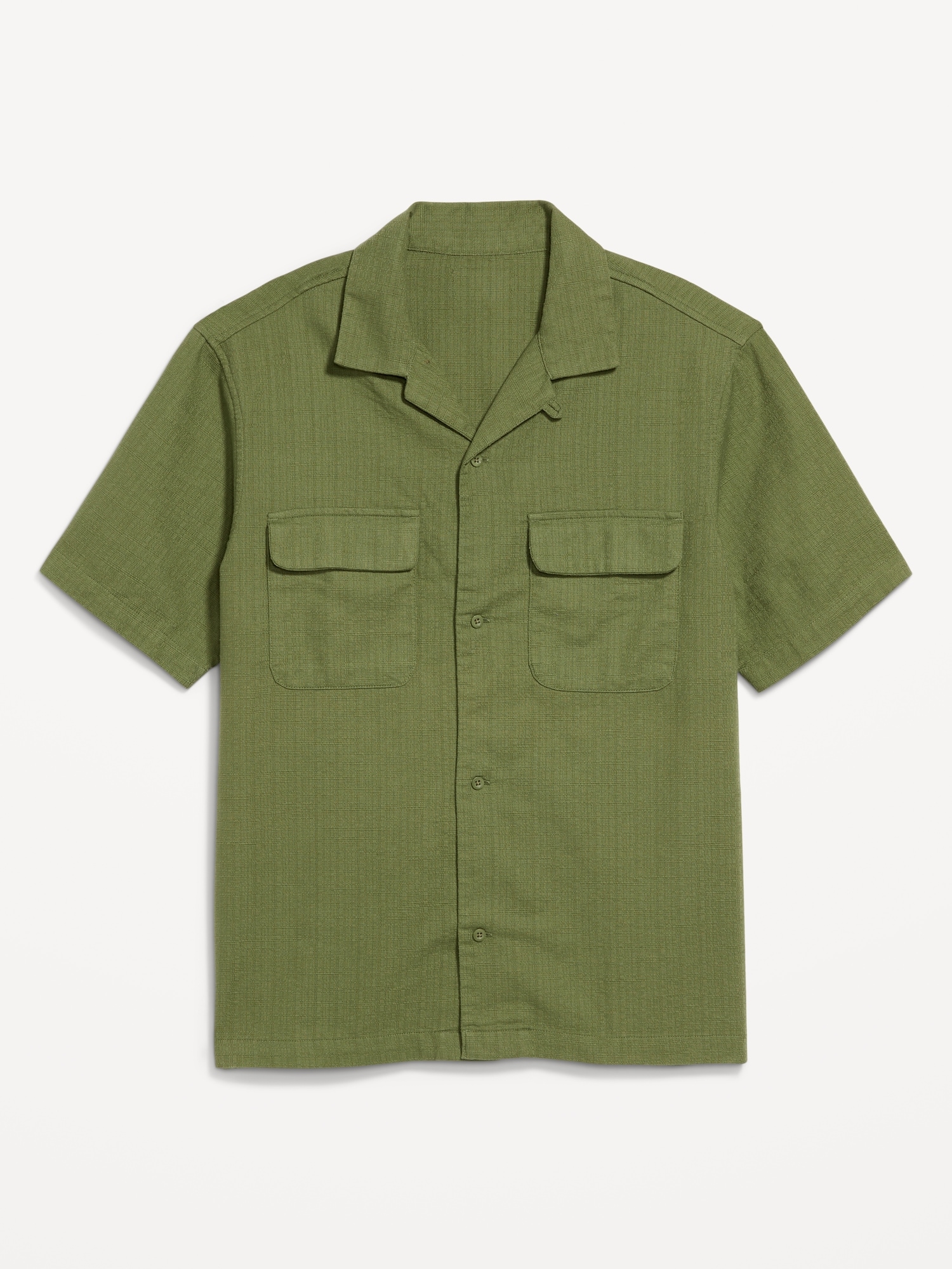 Short-Sleeve Utility Camp Shirt: notched lapel, short sleeves, chest flap pockets, full-button front, #686493