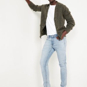 Skinny Built-In Flex Jeans: A modern taper with added room in the hip and thigh.button front, whiskering and fading, zip fly, front scoop pockets, back patch pockets, #564906