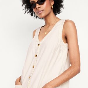 Sleeveless Button-Front Mini Dress
