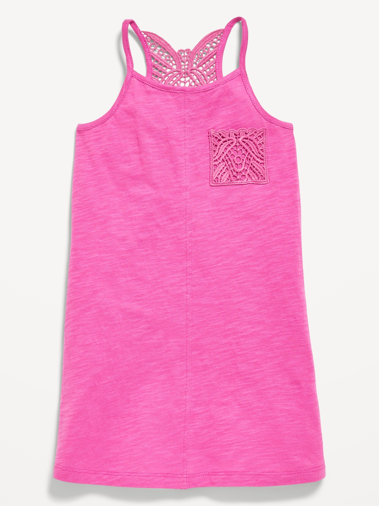 Sleeveless Crochet Racerback Dress for Toddler Girls: rounded neckline, sleeveless, crochet-knit racerback, crochet-knit patch pocket at chest, online exclusive, #766761