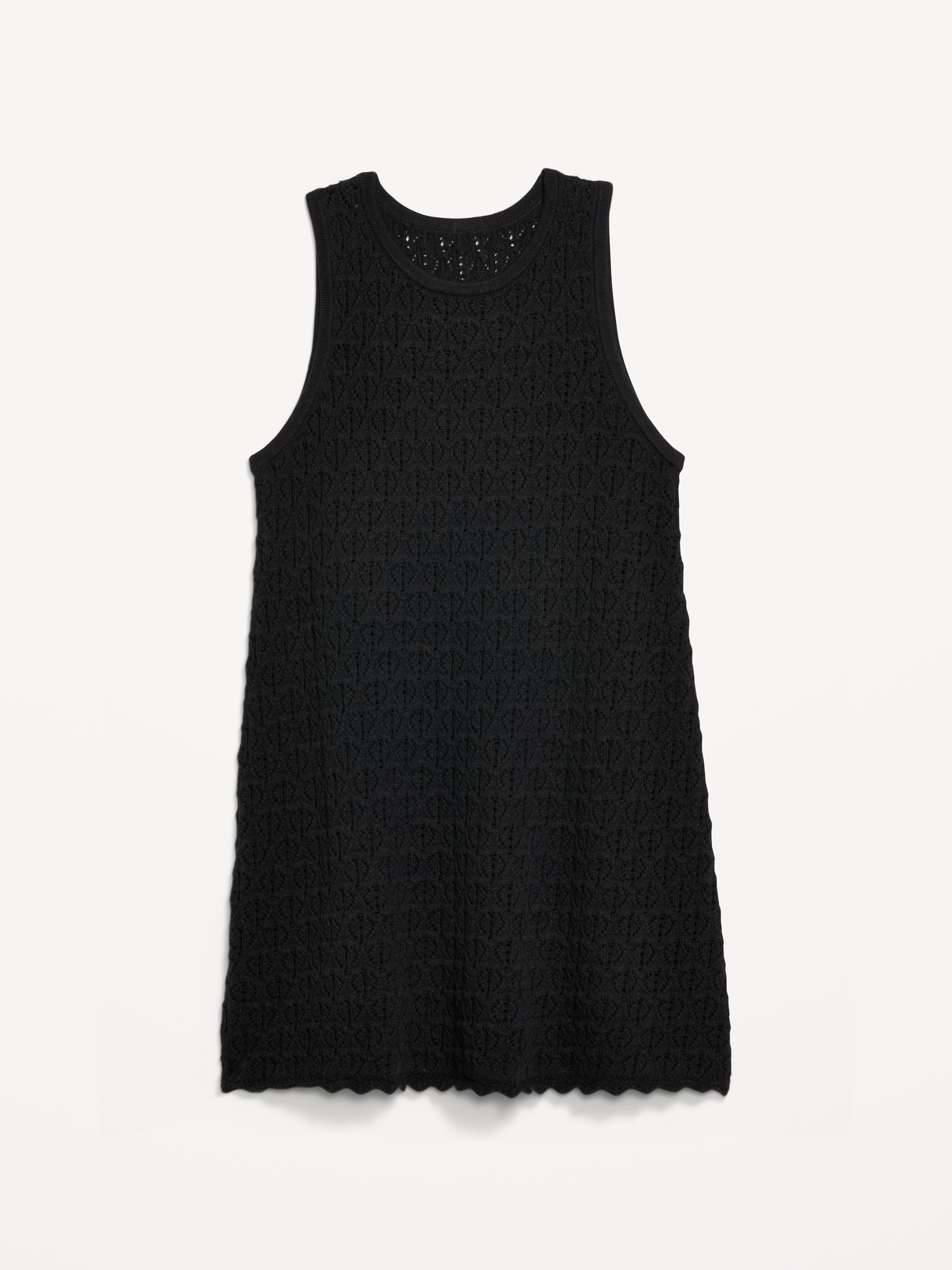 Sleeveless Crochet Tunic Sweater: high neck, scallop hem, pair back to our matching crochet pants, #761504