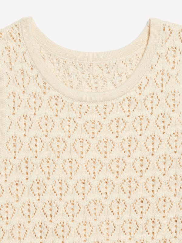 Sleeveless Crochet Tunic Sweater: high neck, scallop hem, pair back to our matching crochet pants, #761504