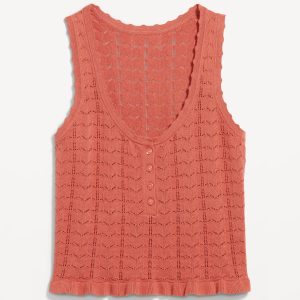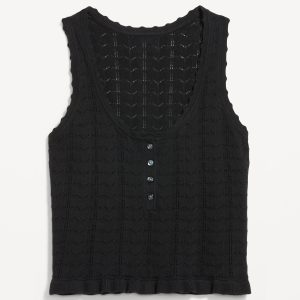 Sleeveless Pointelle Cropped Henley Top