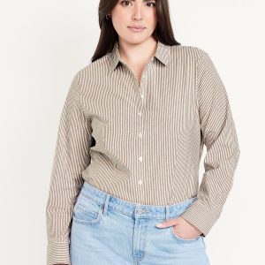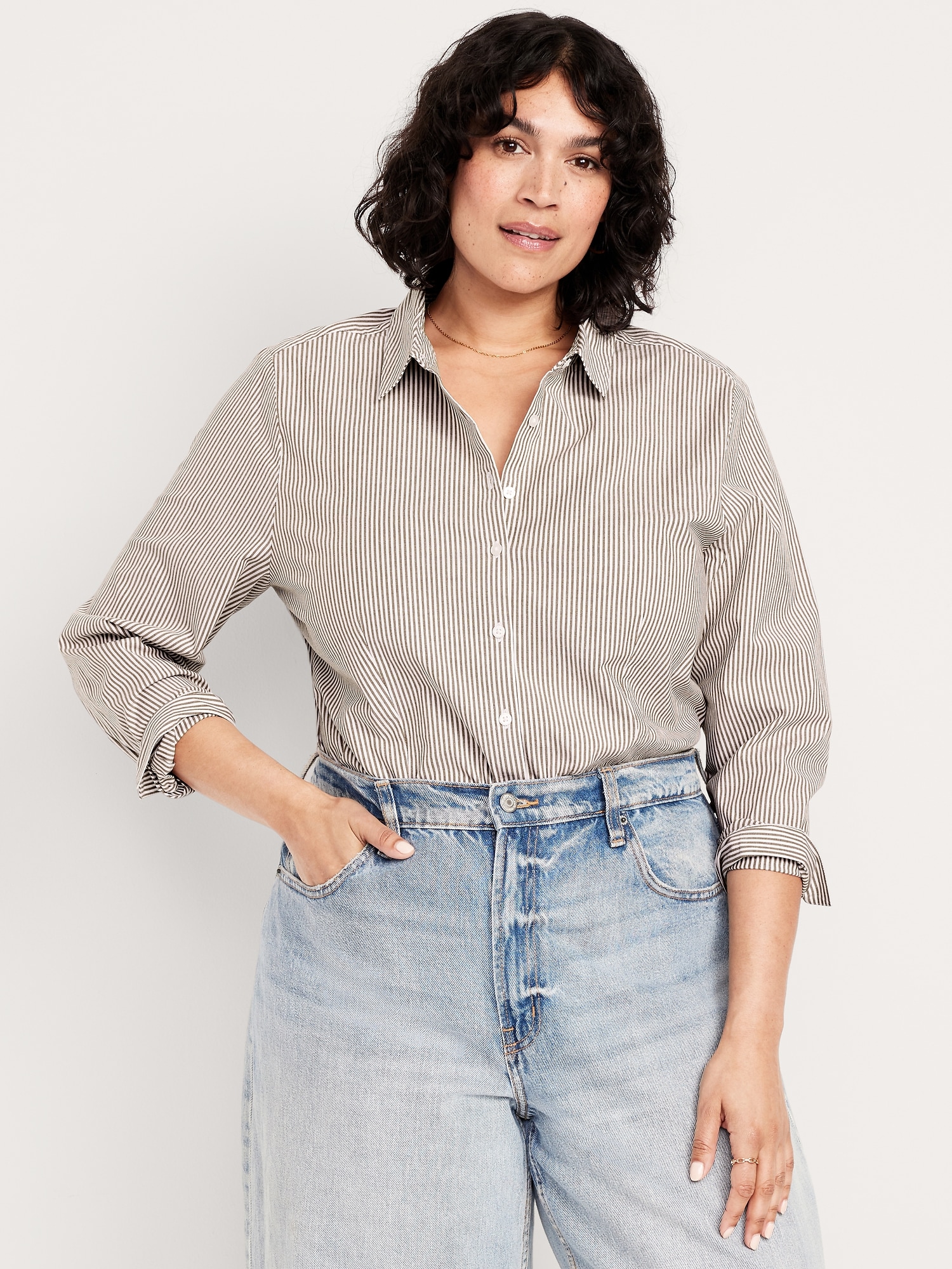 Slim Button-Down Shirt: spread collar, long sleeves, buttoned cuffs, button front, striped print, curved hem, #545902