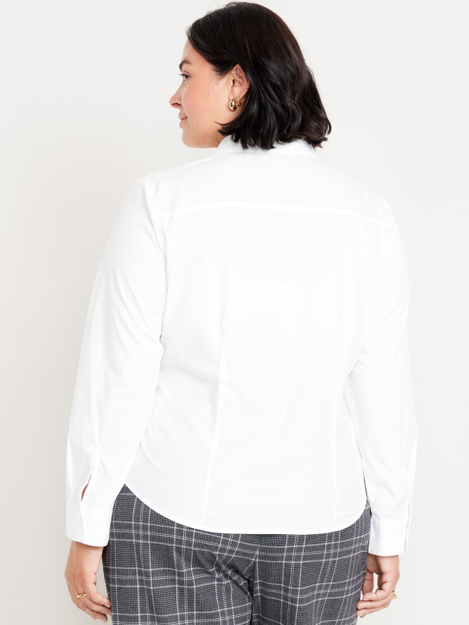 Slim Button-Down Shirt: spread collar, long sleeves, buttoned cuffs, button front, striped print, curved hem, #545902