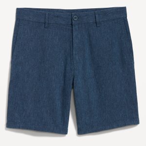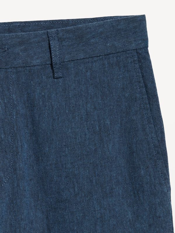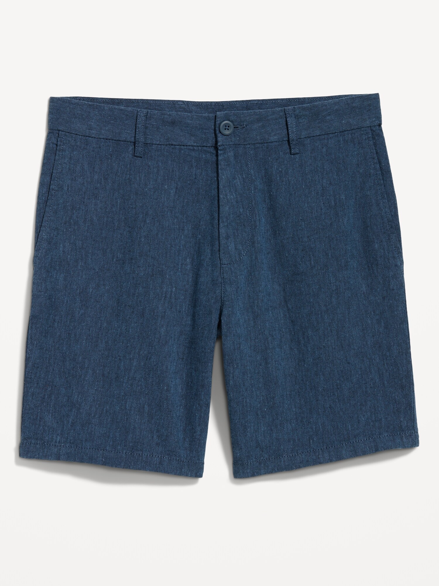 Slim Rotation Linen-Blend Chino Shorts — 8-inch inseam: button front, belt loops, zip fly, on-seam pockets, back welt pockets with button closure at left, #845880