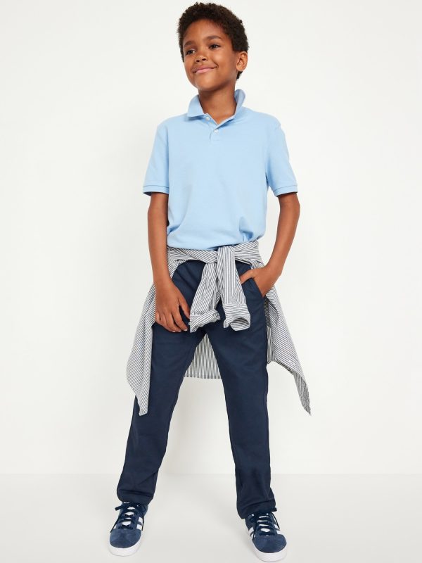 Slim School Uniform Chino Pants for Boys: Uniform Guarantee: Uniforms may be returned for a full refund with the original receipt for 365 days from the date of purchase.interior adjustable waistband, hook-and-bar closure in sizes 5-8, regular button keyhole closure in sizes 10-20, zip fly, diagonal on-seam pockets at front, welt pocket at back, reinforced knees for added durability, #665608