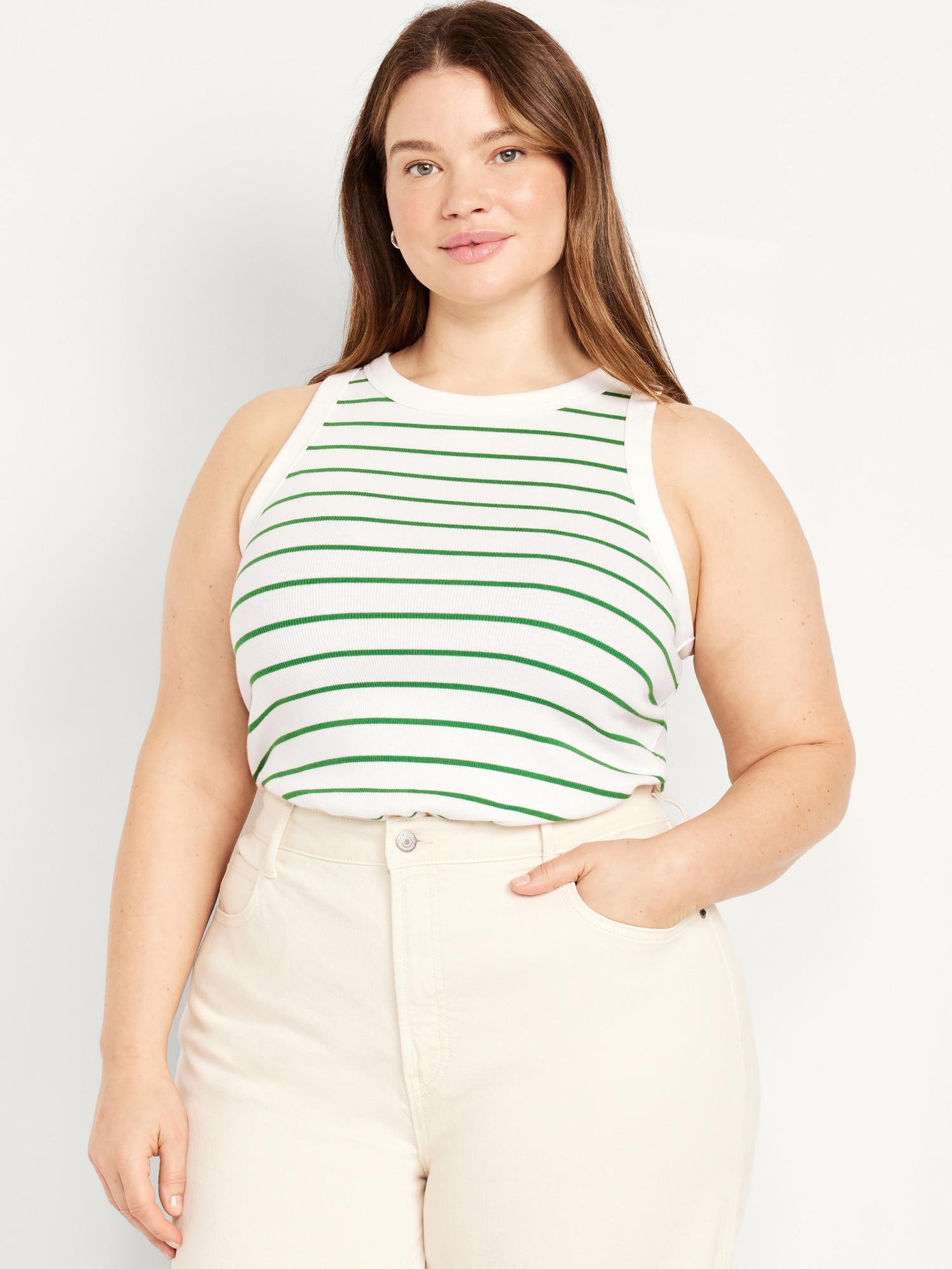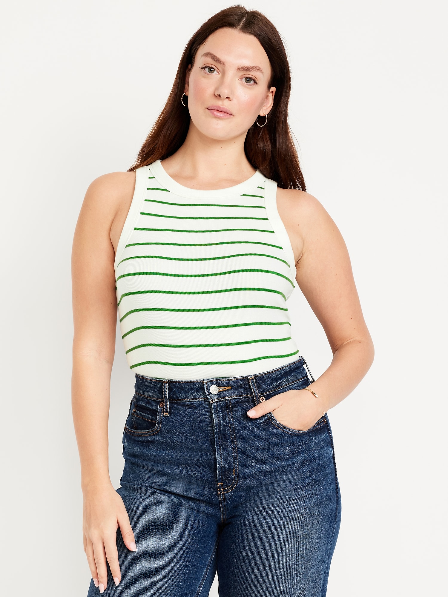 Snug Striped Tank Top: A skimming fit that hugs your bod just right.high crew neck, sleeveless, #889951