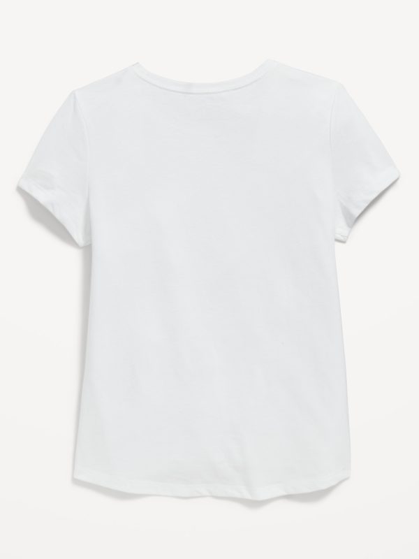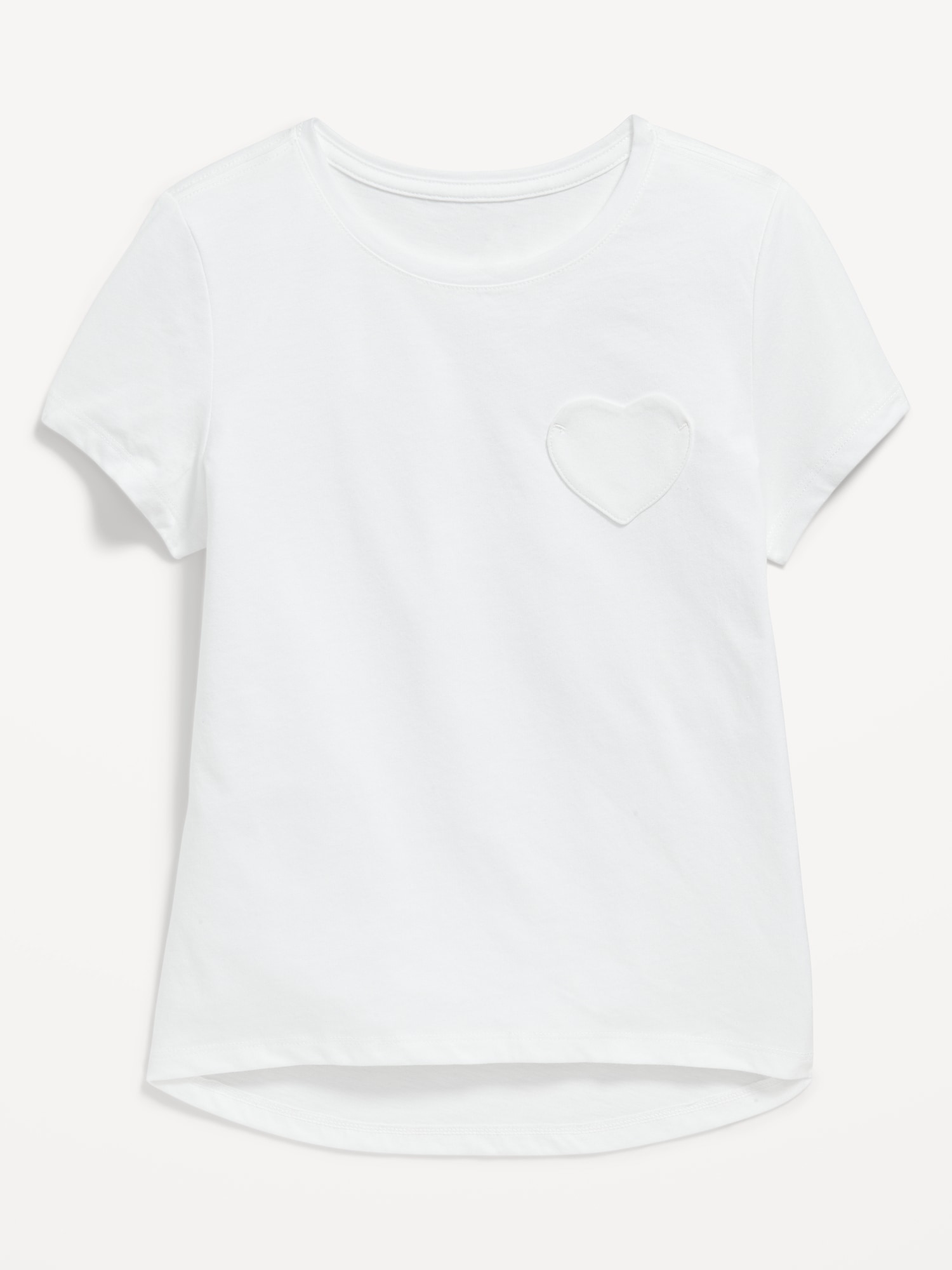 Softest Heart-Pocket T-Shirt for Girls: scoop neck, short sleeves, heart shaped patch pocket, hi-lo hem, #867799