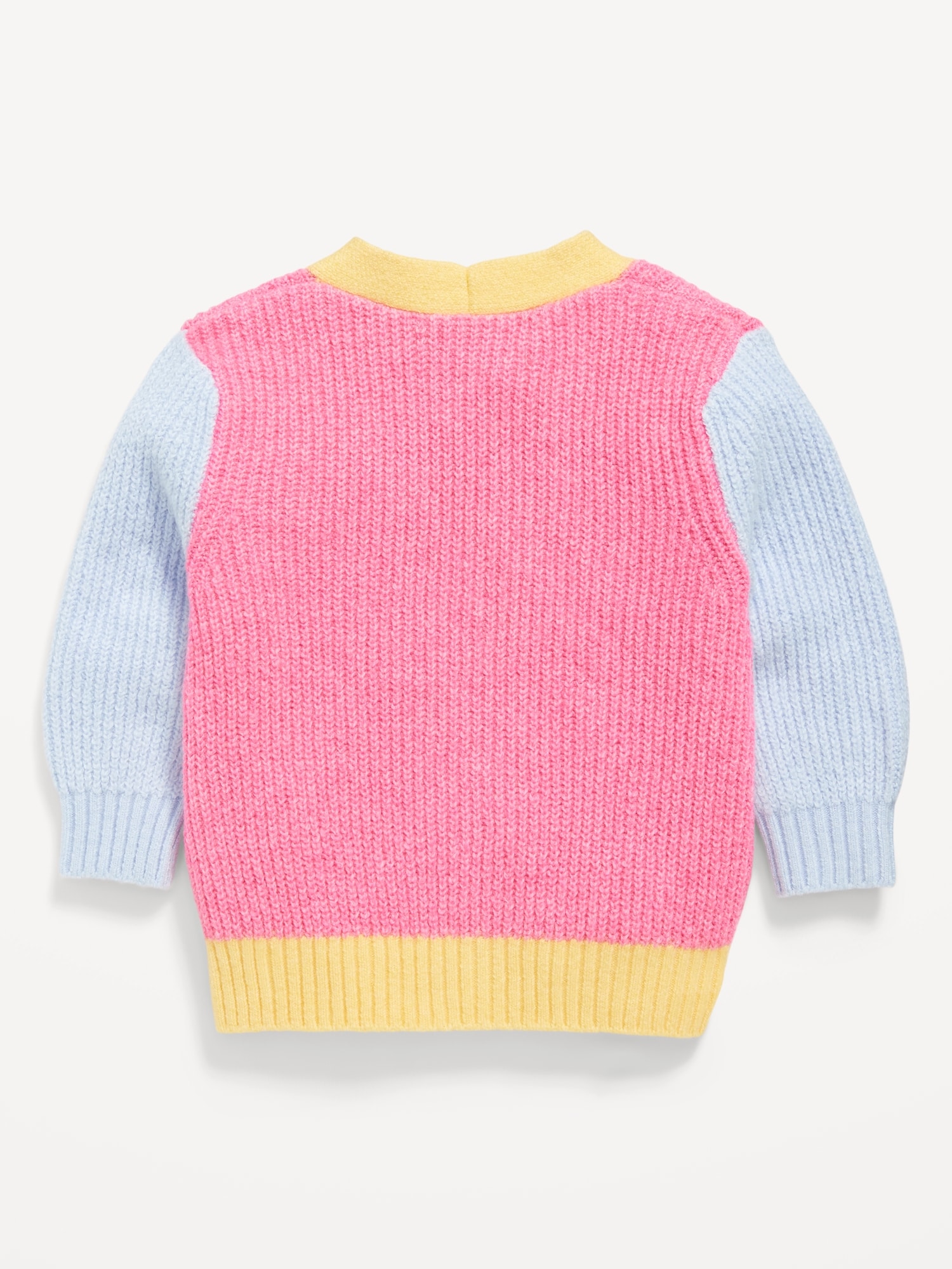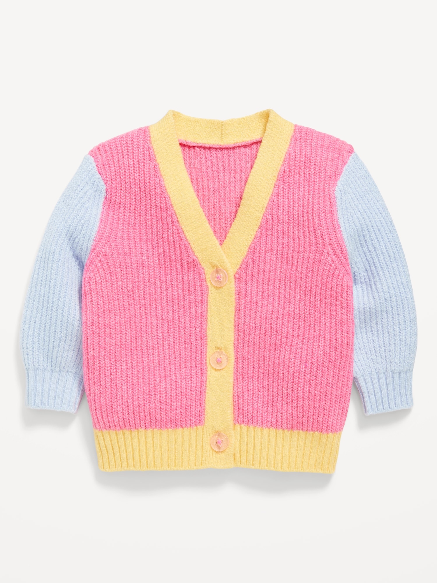 SoSoft Color-Block Cardigan Sweater for Baby: v neck, long sleeves, three-button placket, color block, #789180