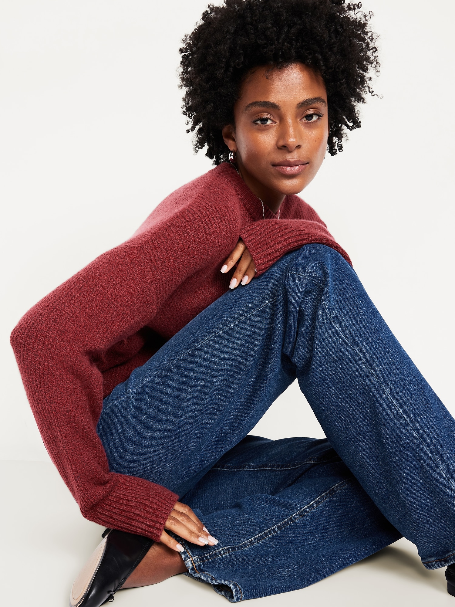SoSoft Crew-Neck Sweater: Featuring SoSoft. Literally “so soft” it’s got cashmere jealous.crew neck, drop-shoulder sleeves, rib-knit trim, pullover style, #784458