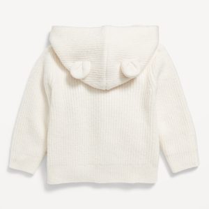 SoSoft Critter Ear Button-Front Sweater for Baby: We call it SoSoft, because it’s whipped-soft, not too heavy, not too thin. The goldilocks of sweaters.built-in hood with critter bear “ears”, long sleeves, patch pockets at hem, full button front, #494402
