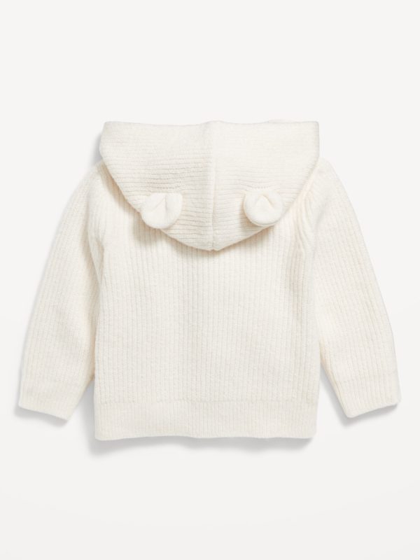 SoSoft Critter Ear Button-Front Sweater for Baby: We call it SoSoft, because it’s whipped-soft, not too heavy, not too thin. The goldilocks of sweaters.built-in hood with critter bear “ears”, long sleeves, patch pockets at hem, full button front, #494402