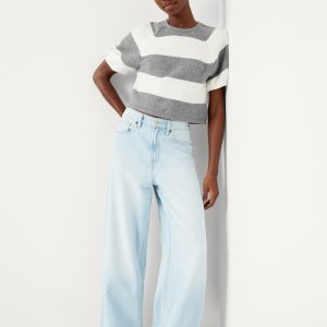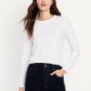 SoSoft Cropped Puff-Sleeve Sweater: Featuring SoSoft. Literally “so soft” it’s got cashmere jealous.crew neck, elbow-length puff sleeves, wide contrasting stripes, #761516