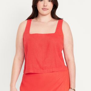 Square-Neck Linen-Blend Crop Tank Top: square neck, sleeveless, darted bust, #756733