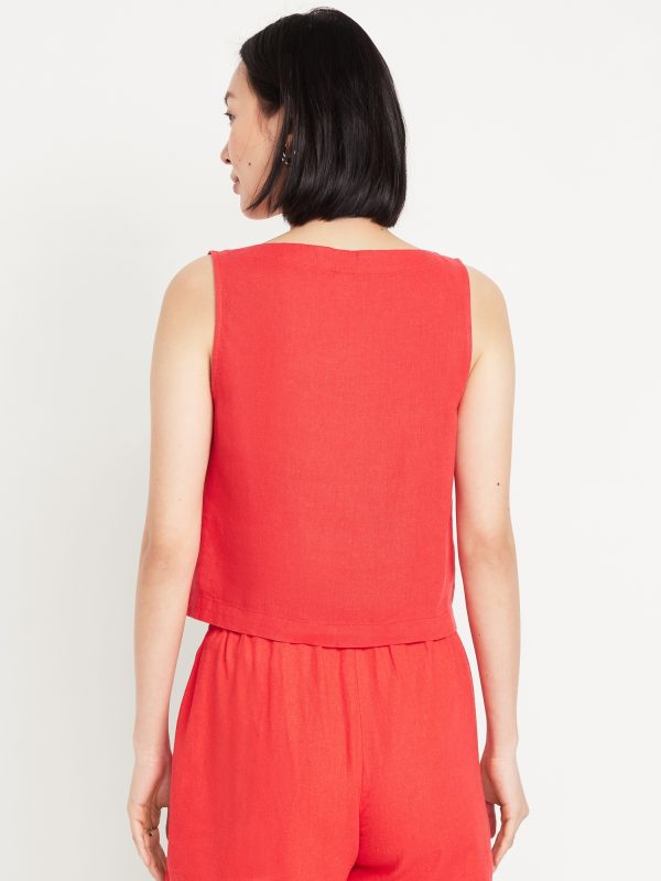 Square-Neck Linen-Blend Crop Tank Top: square neck, sleeveless, darted bust, #756733