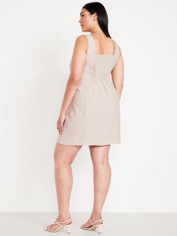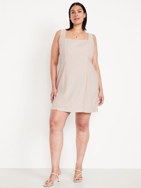 Square-Neck Linen-Blend Mini Dress: square neck, wide straps, smocked back, princess seams, mini length, gingham print, #708450