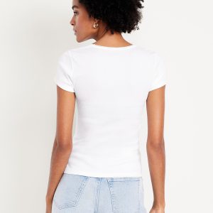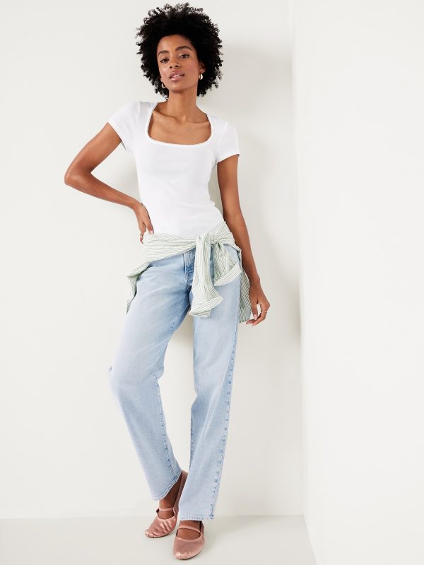 Square-Neck Ribbed T-Shirt: square neck, short sleeves, #749343
