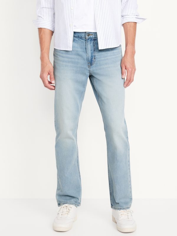 Straight Built-In Flex Jeans: button front, belt loops, zip fly, front scoop pockets, back patch pockets, fading and whiskering, #796708