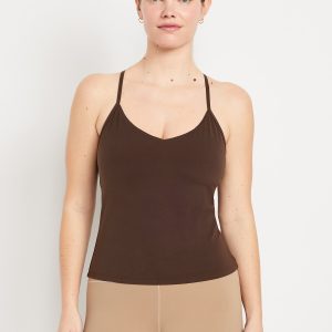 StudioSmooth Racerback Support Top: Featuring StudioSmooth. Buttery soft and breathable, with a barely-there feel.v-neck, adjustable racerback strap, shelf bra with removable pads, go-dry wicks moisture, breathable, #785415