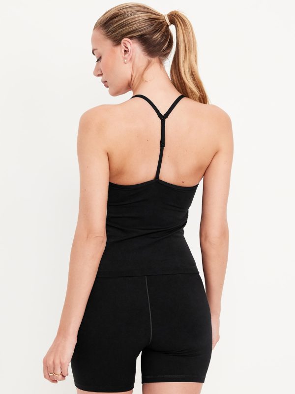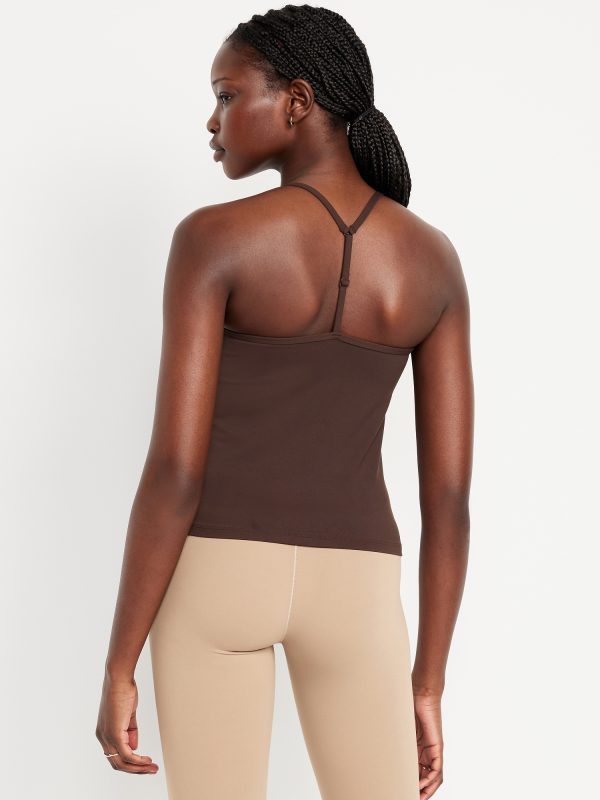 StudioSmooth Racerback Support Top: Featuring StudioSmooth. Buttery soft and breathable, with a barely-there feel.v-neck, adjustable racerback strap, shelf bra with removable pads, go-dry wicks moisture, breathable, #785415