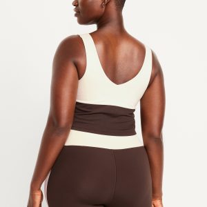 StudioSmooth Seamed Longline Top: Featuring StudioSmooth. Buttery soft and breathable, with a barely-there feel.v-neck and v-back, wide straps, shelf bra with removable pads, go-dry wicks moisture, #784415