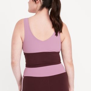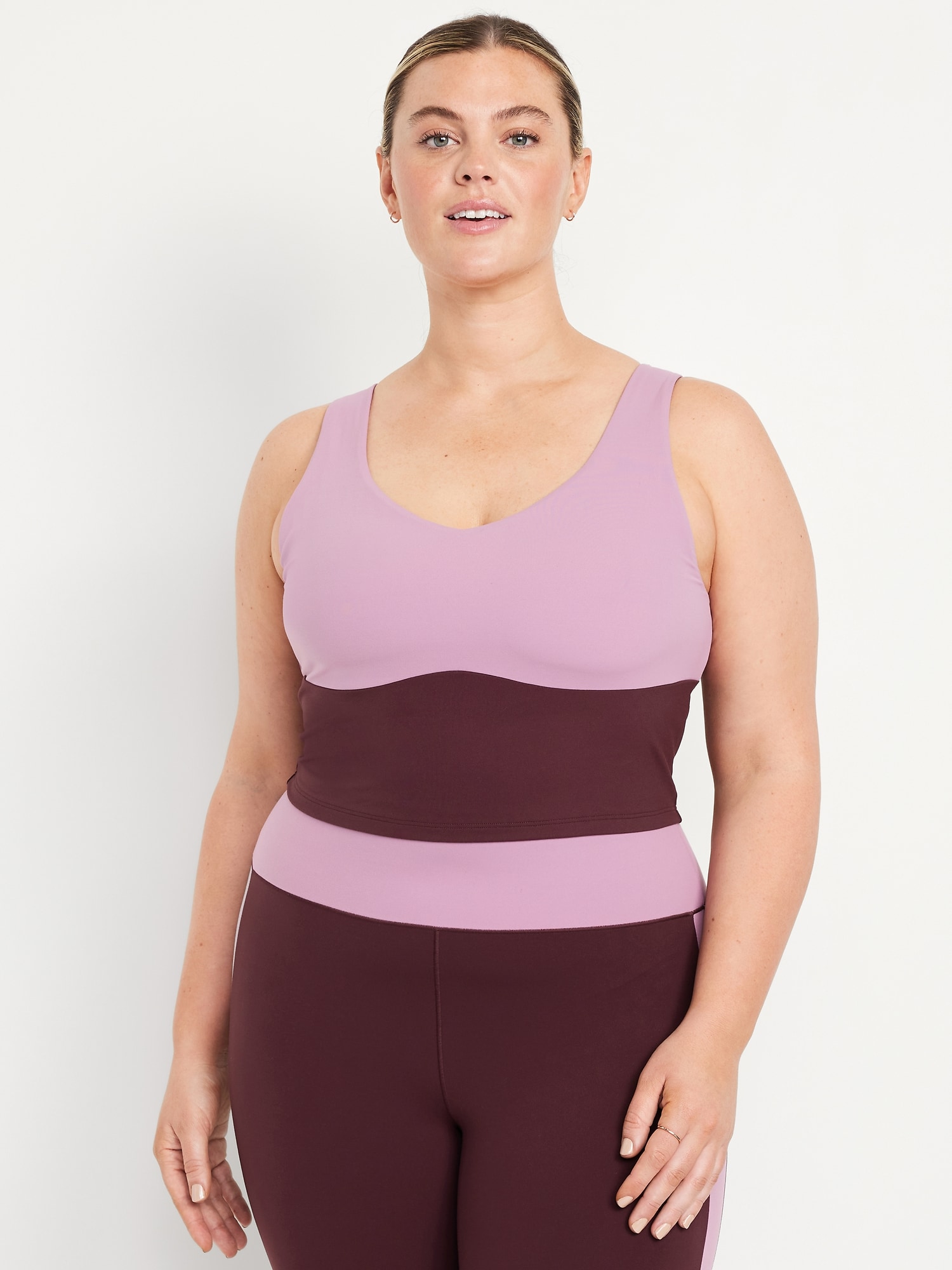StudioSmooth Seamed Longline Top: Featuring StudioSmooth. Buttery soft and breathable, with a barely-there feel.v-neck and v-back, wide straps, shelf bra with removable pads, go-dry wicks moisture, #784415
