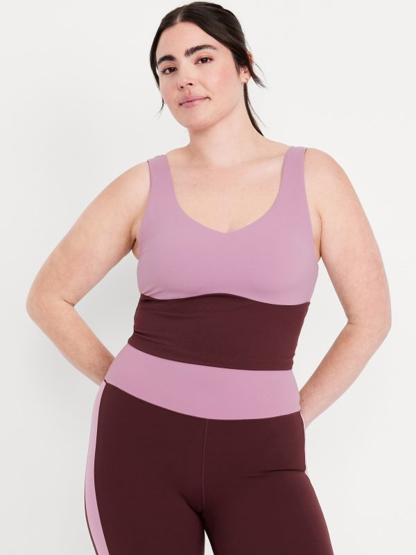 StudioSmooth Seamed Longline Top: Featuring StudioSmooth. Buttery soft and breathable, with a barely-there feel.v-neck and v-back, wide straps, shelf bra with removable pads, go-dry wicks moisture, #784415