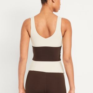 StudioSmooth Seamed Longline Top: Featuring StudioSmooth. Buttery soft and breathable, with a barely-there feel.v-neck and v-back, wide straps, shelf bra with removable pads, go-dry wicks moisture, #784415