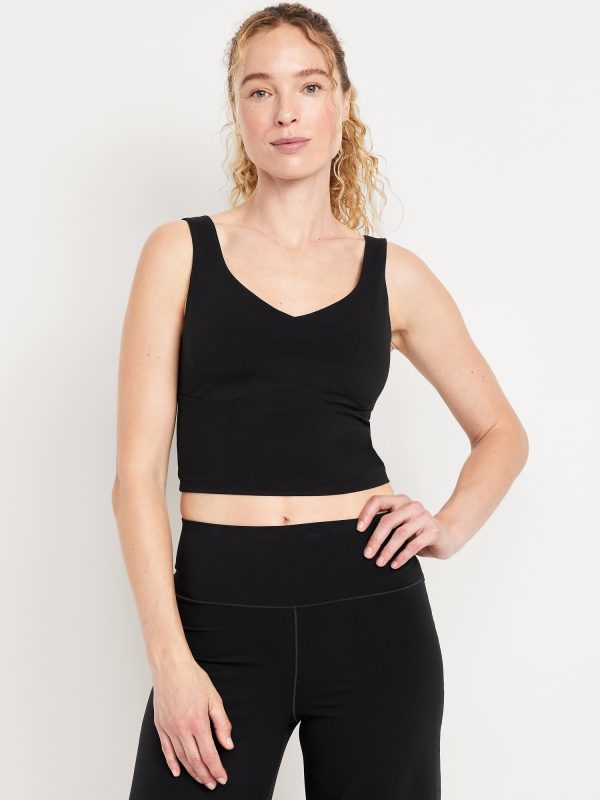 StudioSmooth Seamed Longline Top: Featuring StudioSmooth. Buttery soft and breathable, with a barely-there feel.v-neck and v-back, wide straps, shelf bra with removable pads, go-dry wicks moisture, #784415