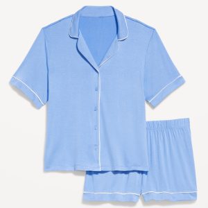 Sunday Sleep Knit Jersey Short Set: Knit jersey so unbelievably soft and stretchy.set includes pajama shirt and matching shorts, spread collar, short sleeves, full-button front, elastic-waist pull-on shorts, #422180