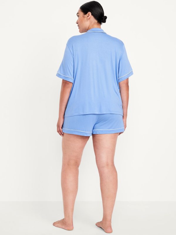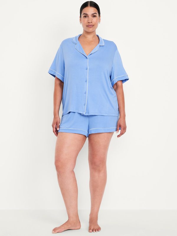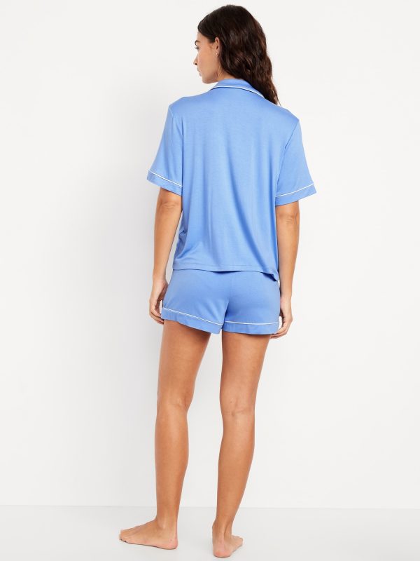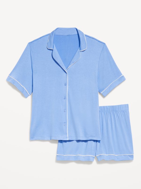 Sunday Sleep Knit Jersey Short Set: Knit jersey so unbelievably soft and stretchy.set includes pajama shirt and matching shorts, spread collar, short sleeves, full-button front, elastic-waist pull-on shorts, #422180