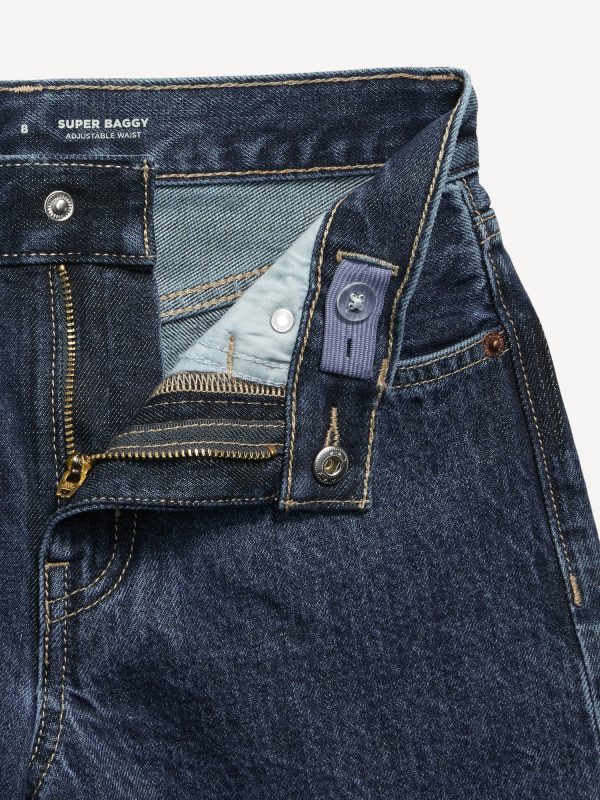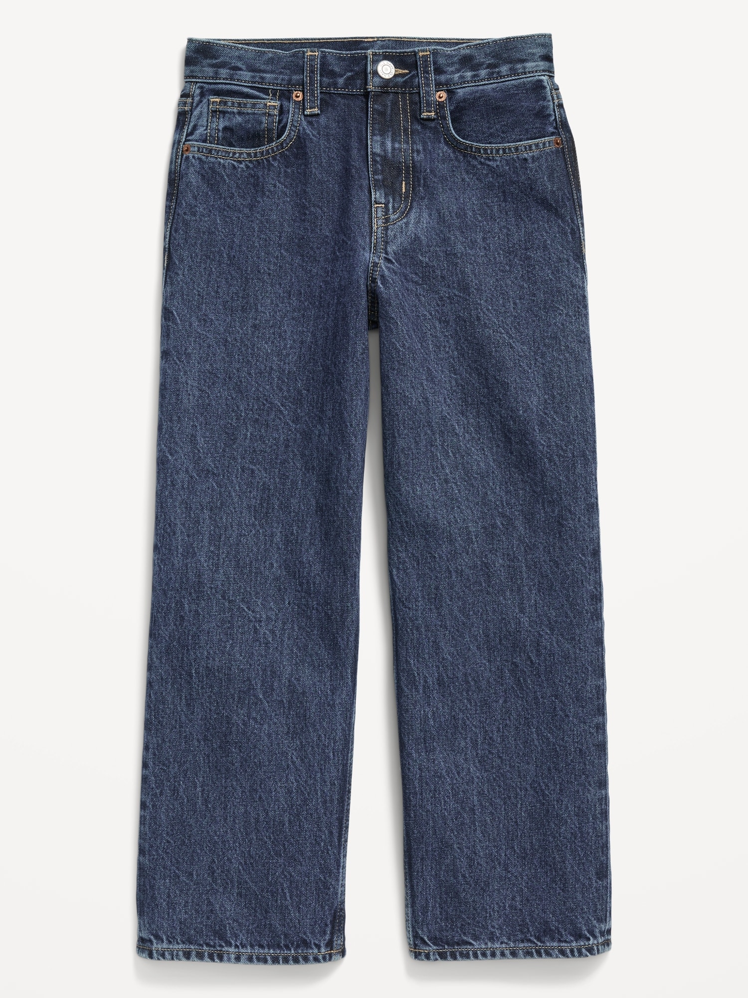 Super Baggy Jeans for Boys: interior adjustable waistband, sizes 5-8 snap-button closure, regular button closure sizes 10-20, zip fly, scoop pockets and coin pocket, patch pockets at back, #766416
