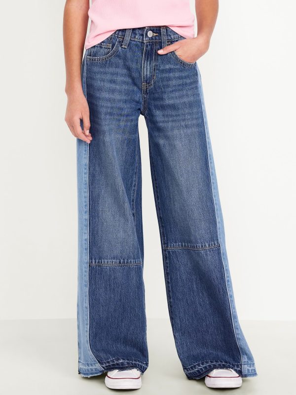 Super Baggy Two-Tone Wide-Leg Jeans for Girls