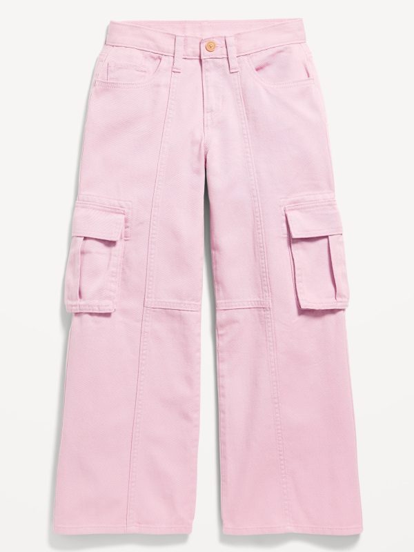 Super Baggy Wide-Leg Cargo Twill Pants for Girls: regular button closure, zip fly, scoop pockets and coin pocket, patch pockets at back, paneled front, cargo pockets at each leg, wide leg, #829220