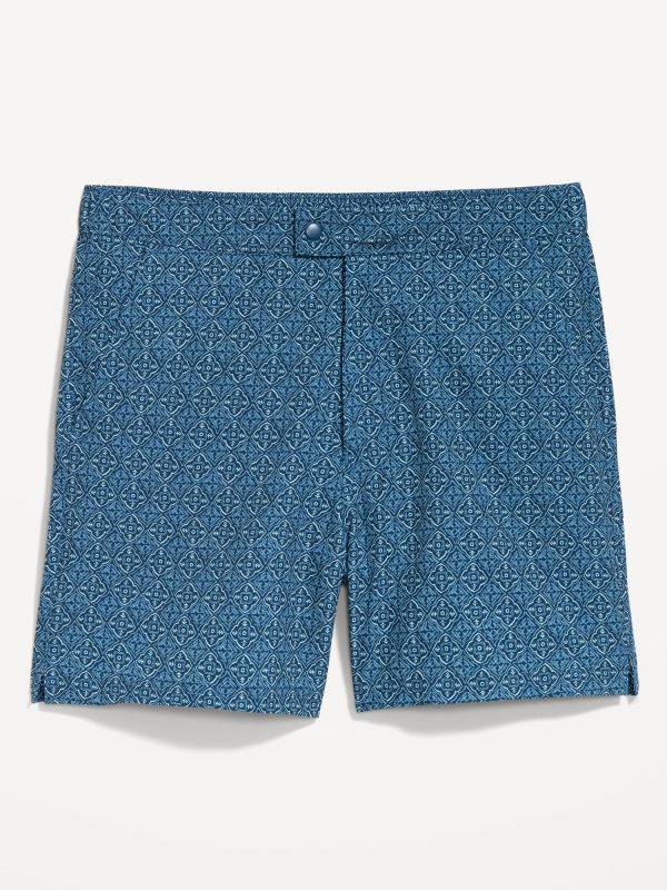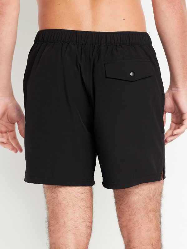 Tailored Swim Trunks — 5-inch inseam: snap front, interior drawstring with elastic back waist, diagonal front pockets, snap-flap back right pocket, quick dry, four-way stretch, #665104