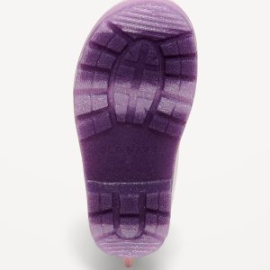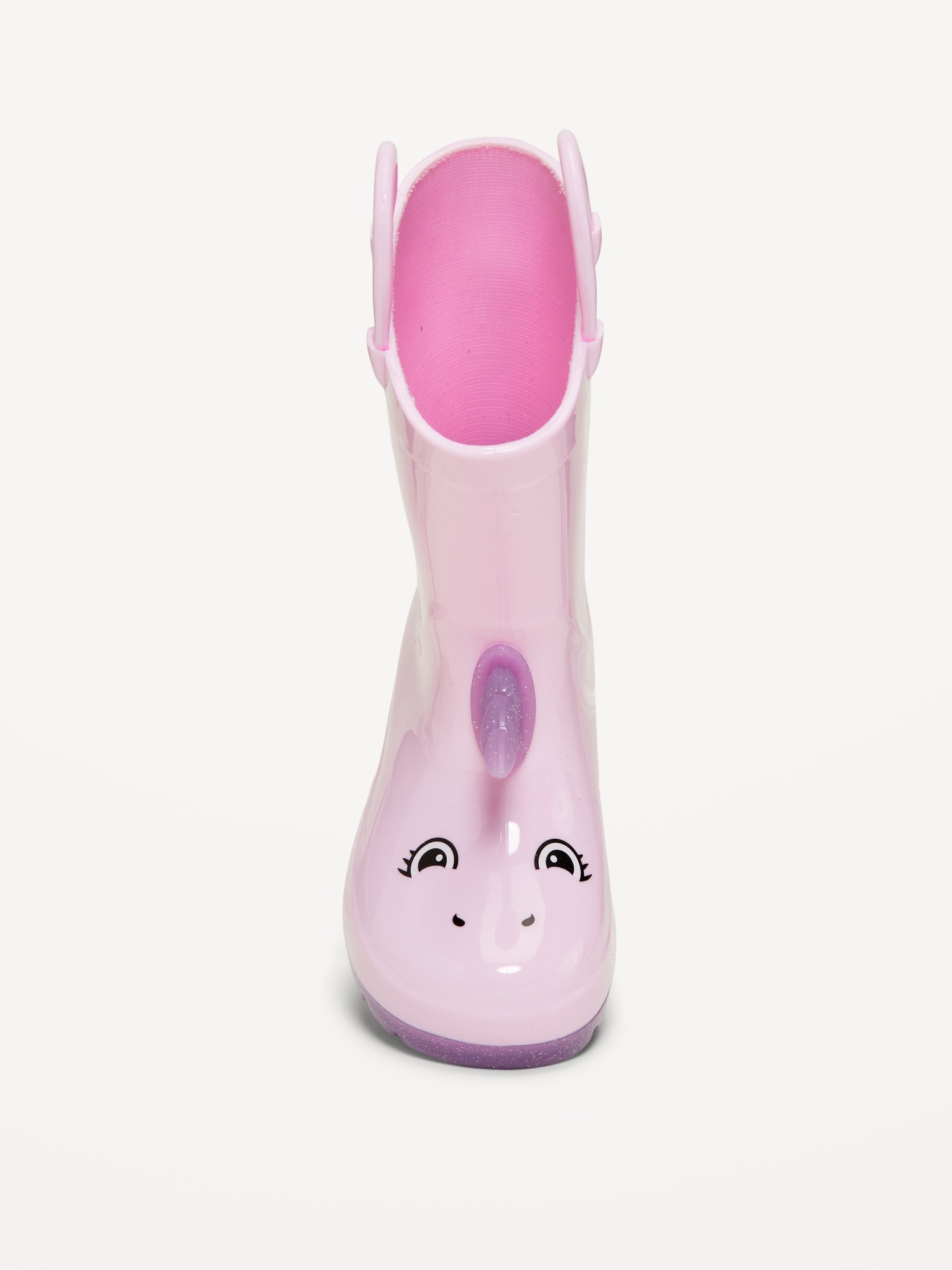 Tall Unicorn-Graphic Rain Boots for Toddler Girls: duck “face” at front, easy pull-tabs at sides, cushioned foot bed, rugged lug outsole with 1/4-inch heel, #804409