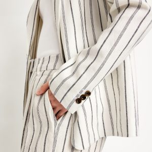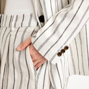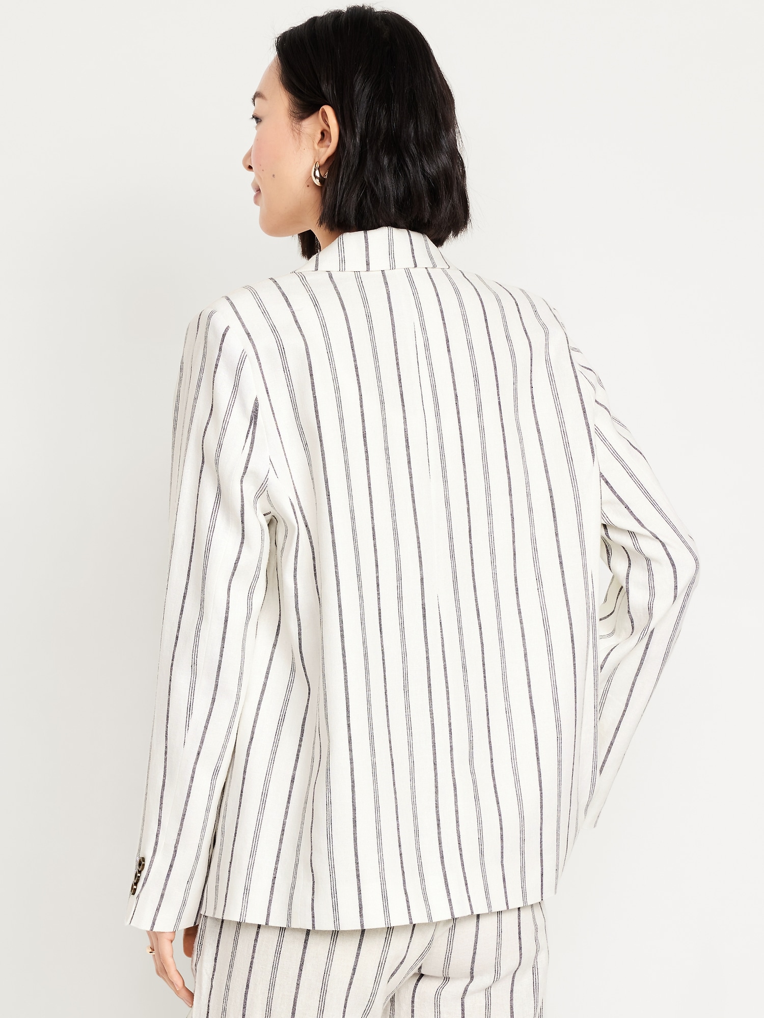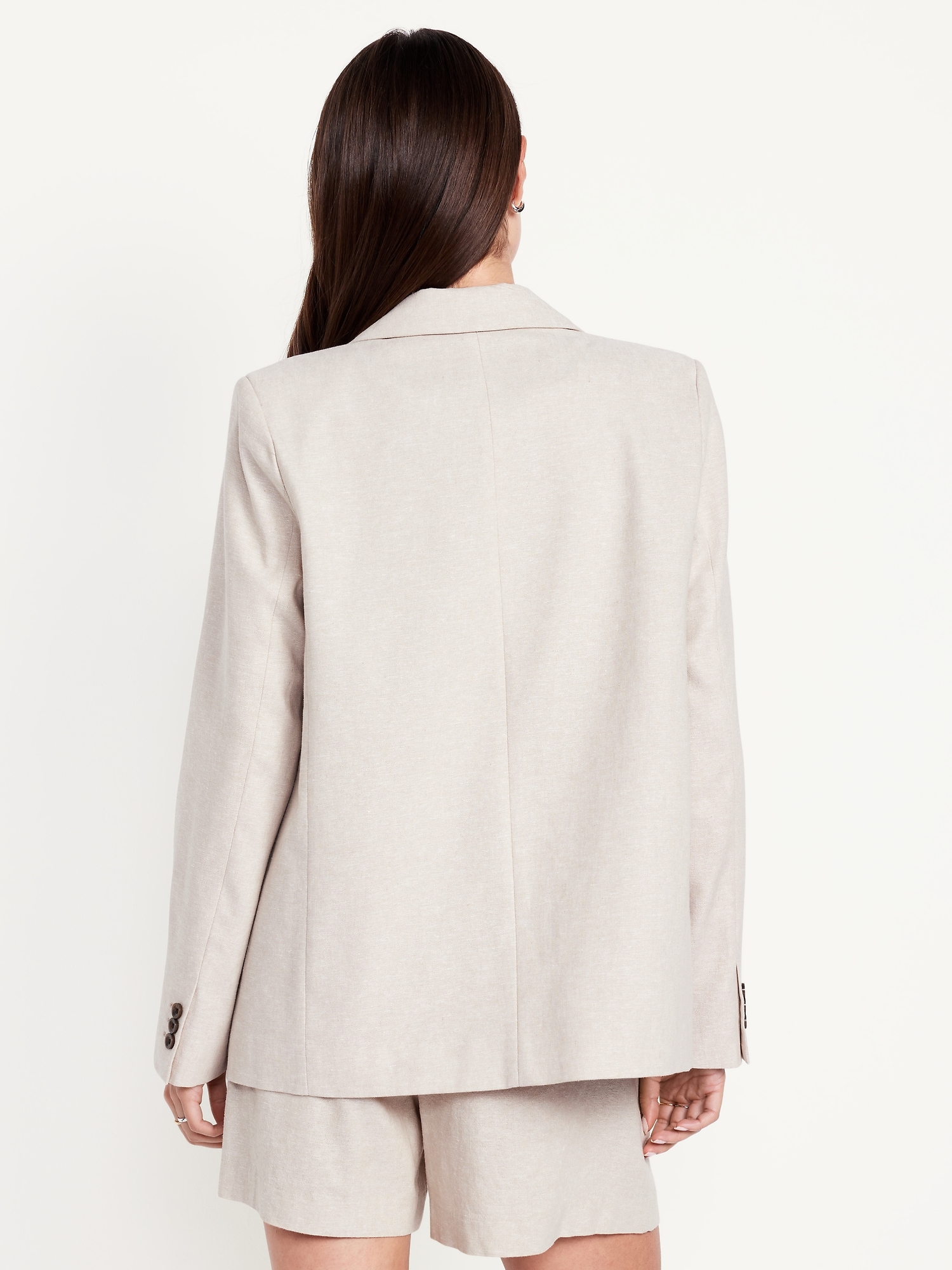 Taylor Fitted Linen-Blend Suit Blazer: notched lapel, long sleeves, buttoned cuffs, single-button front, front pockets, #663788