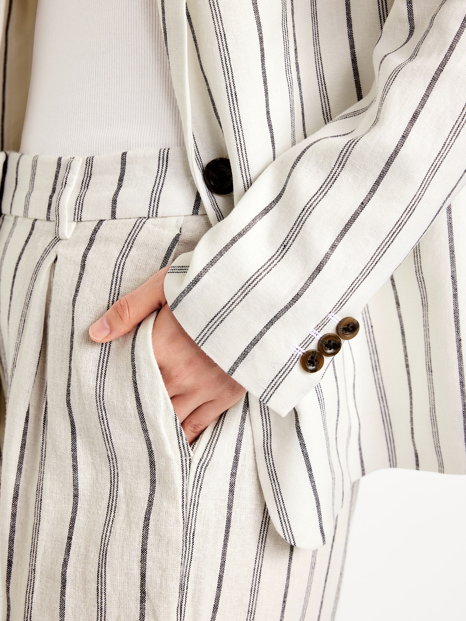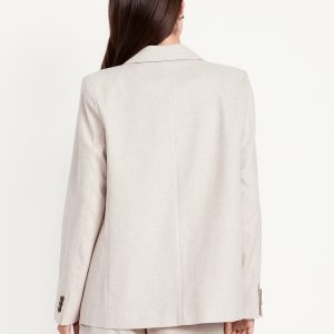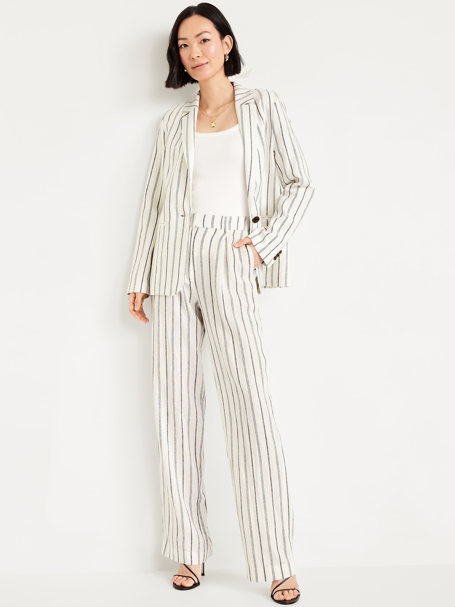 Taylor Fitted Linen-Blend Suit Blazer: notched lapel, long sleeves, buttoned cuffs, single-button front, front pockets, #663788