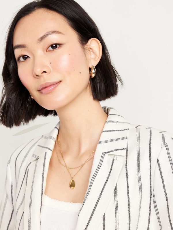 Taylor Fitted Linen-Blend Suit Blazer: notched lapel, long sleeves, buttoned cuffs, single-button front, front pockets, #663788