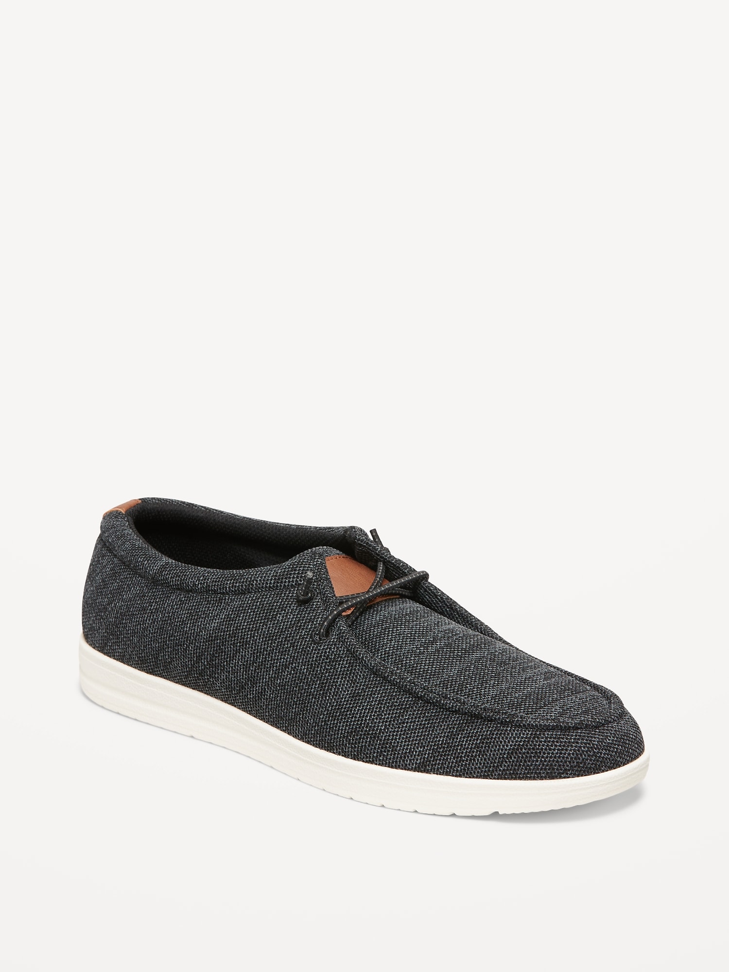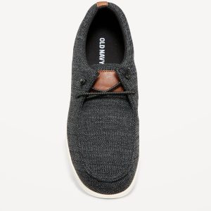 Textured Knit Loafers: decorative lace front, soft-knit upper, contrasting synthetic midsole, textured outsole, easy slip-on style, #684902